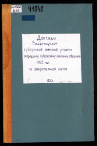 3<^ ДОКЛАДЫ ВЛАДЙИРСКОЙ ГУБЕРНСКОЙ ЗЕМСКОЙ УПРАВЫ очередному губернскому земскому собранію 1905 ГОДА. ПО ЭМЕРИТАЛЬНОЙ КАССѢ. Бладиміръ на Клязьмѣ. 1Ш10 ЛИ101РАФШ ПЬІРНОКОИ ЗЬМОКОЙ УПРАВЫ. 1905.