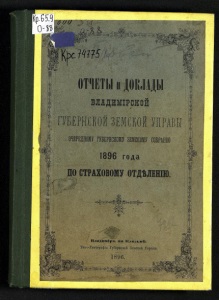 і)'^мё* "Щ^'У^й ОТЧЕТЫ и ДОКЛАДЫ ГУБЕРНСКОЙЗЕМСКОЙ УПРАВЫ л- // очередному губернскому земскому собранію 1896 года по СТРАХОВОМУ ОТДѢЛЕНІЮ. Л ВЛАДИМІРЪ НА Клязьмѣ. Типо-Литографія Губернской Земской Управы. І8вв.