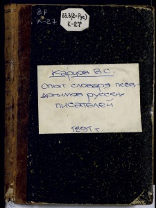 в. с. Карцовъ и М. Н. Мазаѳвъ. опытъ СЛОВАРЯ ПСЕВДОНИМОБЪ РУССІШХЪ ПИСАТЕЛЕЙ. С.-ПЕТЕРВУРГЪ. Типо-Литографія И, А, Ефрона, Прачешный пер,, М 6.