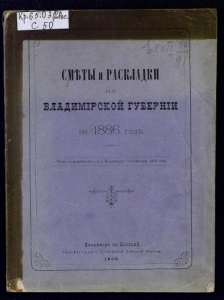 СМІіТи н РАСКЛАДКИ г г о іЮТКРбКОН шштшш на І886 ГОДЪ. Печп.'г. с'ь раирѣпі-еиіл г. и. д. Владим!])ск. Губррпа.ічірП:. 1880 і-ода. » Ж. і о:б Владиміръ на Клязьмх. 'Гипо-Л ито графі II Губеііііской Земсісон Упраіш. 1886. 9 О