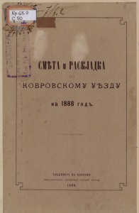 ijf ^^ I С 50 ШЯШ “ = : =""“:^і" •^ □ у \ ф-я-И Д | Щ . * і С, . 1 £ I Д ІЖТ i I РАСКЛАДКА \ U t - ** ' - по КОВРОВСКОМУ УѢЗДУ на 1888 годъ. ВЛАДИМІРЪ НА КЛЯЗЬМѢ, ГИПО-.IИТОГРАФWl ГУі;КРИСКОЙ ЗКМСКОЙ УII РАПЫ. р ] ______ 1888. [Д -