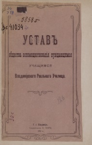 УСТАВЪ общества вспомоществованія нуждающимся У Ч А Щ И М С Я ^ реальнаго Училища. ГУБ. Г. ВЛАДИМИР. # С к о р о п е ч а т н я И . К о и л ь . І9ІО г.