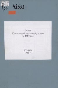 ГОРОДСКОЙ УПРАВЫ ГОРОДЪ СУЗДАЛЬ. ТИПОГРАФІЯ Н. В. КОЗЛОВА. 1910. ОТЧЕТЪ суздальской 3А 1909 ГОДЪ.