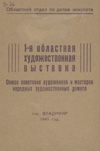 Областной отдел По делам искусств 1-я областная художественная выставка Союза совектисх художников имастеров народных худжоетсвенных ремелсе г о р . ВЛАДИМИР1945 год.