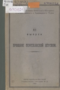 Труды Переславль-Залесского Историка Художественного и Краеведного Музея ПРОШЛОЕ ПЕРЕСЛАВСКОЙ ДЕРЕВНИ. ПЕРЕСЛАВЛЬ-ЗАЛЕССКИЙ Государственная Типография № 12 1929 XII в ы п у с к