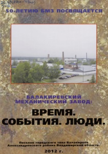 ** ; . ,* 5 0 -ЛЕТИЮ БМ3 ПОСВЯЩАЕТСЯ г ^ ^ / й к щ ж * . МЕХАНИЧЕСКИЙ ЗАВОД : ВРЕМЯ. СОБЫТИЯ. ЛЮДИ. * > I V . . « ,ф.. \ * * П о с е л о к г о р о д с к о г о типа Б а л а к и р е в о А л е к с а н д р о в с к о г о р а й о н а В л а д и м и р с к о й о б л а с т и . 2012 г.