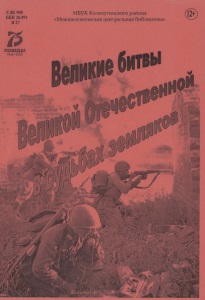 Составитель: Барахова Е.Н., зав. сектором библиографии МБУК Кольчугинского района «Межпоселенческая центральная библиотека» Великие битвы Великой Отечественной в судьбах земляков: [краеведческий дайджест]/ Межпоселенческая центральная библиотека; сост.: Е. Н. Барахова. - Кольчугино, 2020. - 32 с.: ил. Данное издание содержит воспоминания жителей города Кольчугино и Кольчугинского района, участвовавших в самых известных битвах Великой Отечественной войны. Может быть использовано при изучении истории города. 1