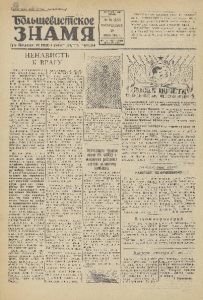пролетарии всех стран, соединяйтесь! Большевистское ЗНАМЯ Орган Петушинского РК ВК(1(б) и райсовета депутатов трудящихся ДВЕНАДЦАТЫЙ ГОД ИЗДАНИЯ No 80 (172) ВОСКРЕСЕНЬЕ 19 ИЮЛГМ942 г. ВЫХОДИТ 3РАЗА ВНЕДЕЛЮ] Цена 10 коп. Ожесточенность сражений нарастает с каждым днем. Презирая смерть, советские воины отстаивают каждую пядь родной земли, наносят огромный урон живой силе и технике врага. Беззаветным, самоотверженным трудом поможем Красной Армии остановить вражьи орды, обескровить противника и погнать его на Запад! НЕНАВИСТЬ К ВРАГУ Много писем присылают нам бойцы Красной Армии. Волнующее патриотическое письмо получено из Действующей Крас ной Армии от лейтенанта Ф. Ф. Кондрашева. Вторично идя в бой, он клянется, что вместе с двумя братьями будет истреблять немцев пока бьется сердце, пока руки держат винтовку. Боевой нривет шлют рабо чим и работницам фабрики, где директором тов. Закубан- ский, гвардейцы Сергей Куз нецов и А. Никешин. Они пишут- о своей ненависти к врагу, о непоколебимой вере в победу советского оружия. Воспушинским колхозникам шлет привет из Действующей Красной Армии красноармеец Андрей Петрович Суриков, колхозникам сельхозартели «Передовик» шлет привет артиллерист Борис Иванович Кондратьев. Новых успехов желает рабочим и работницам комбината Михаил Васильевич Дува- ев. Есть одно общее во всех письмах с фронтов великой отечественной войны: жгучая ненависть к врагу, клятва истреблять проклятых извергов, посягнувших на нашу свободу, жизнь и честь. К грозной беспощадной мести зовут нас героические защитники родины. Они пи шут: помогайте истреблять немца - грабителя, немца- убийцу. Они пишут: немец занес окровавленный нож над своими близкими, он пришел, чтобы истребить все, что тебе дорого в жизни. Ударим же сообща по окровавленной лапе фашистского насильника. Этот призыв с далеких донецких степей, брянских, калининских лесов мы слышим и отвечаем делом: комбинат, где директором тов. Кузьмин, в соревновании на лучшее снабжение фронта вооружением получил вторую премию ВЦСПС и Наркомтекстиля, с каждым днем увеличивают производство для Красной Армии фабрика, где директором тов. Закубанский, артель «Трудовой коллектив» и многие другие предприятия района. Можно назвать сотню славных имен стахановцев, подлинных гвардейцев трудового фронта. Назовем лучших из лучших. На фабрике, где директором тов. Закубанекий, на фабричной доске почета значатся: Пелагея Васильевна Веденская, Фекла Васильевна На комбинате, где директо ром тов. Кузьмин, на фабрич ную доску почета занесены Иван Яковлевич Широв, орде ноносец Надежда Егоровна Лы жина, Иван Иванович Швей кин, Яков Дмитриевич Горлов установщика Ольга Ивановна Таланова, ошкуровщица Анто вина Дмитриевна Фигуркина упаковщица Елена Григорьев на Полунина, штамповщица Анна Потанина, установщича Анна Егоровна Маркина, то карь Александра Федоровна Макарова. Честь и слава им! В свой труд они вкладывают йена висть к врагу, любовь к геро ям бойцам Красной Армии. 17 июля это прекрасно выразила в своей речи на митинге рабочих комбината, посвященном вручению переходящего крас ного знамени, стахановка Вера Ефимовна Чернова: «Пусть святая ненависть к врагу ста нет главным и самым острым нашим чувством. От нас, работниц, во многом зависит победа. Стонет наш родной народ в районах, захваченных немцам
