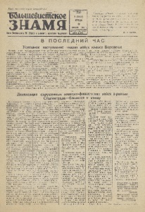 Грогстарии всех стран, соединяйтееь! Большевистское З Н А М Я 3?ган Йетушинснога PH ВН(1(б) ирайшета депутатов трудящихся ТРОДДАТЫ* ГОД ИЗДАИНЯ 8 (1636) СРЕДА 20 ЯНВАРЯ 1943 г ВЫХОДТ И 3 РАЗА В Н Е ДЛЕЮ „Товарищи-рабочие, товарищи - красноармейцы! Напрягите все силы! Во что бы то ии стало- преследуйте отступающие войска, бейте их. не давайте им ни часа, ни минуты отдыха. Теперь больше всего мы можем и должны ударить как можно сильнее чтобы добить Дарага “. (В, И ЛЕВИН). тет В ПОСЛЕДНИЙ ЧАС I. Успешное наступление наших войск южнее Воронежа На-днях наши войска, расположенные южнее ВОРОНЕЖА, перешли в наступление против немецко- фашистских войск. Наступление началось на трех направлениях: из районов СЕЛЯВНОЕ и ЩУЧЬЕ на юго-запад, из района КАН- ТЕМИРОВКА - на северо- запад и запад. Прорвав сильно укрепленную оборону противника в районе ОЕЛЯВИОЕ протяжением 45 километров, в районе ЩУЧЬЕ протяжением 50 километров и в районе КАНТЕМИРОВКА протяжением 60 километров, наши войска за три дня напряженных боев, преодолевая сонротивдение противнива, продвинулись вперед на 50—90 километров. Нашими войсками занято более 600 населенных пунктов, в том числе город н железнодорожный узел РОССОШЬ. районные центры и же- лезнодорожные станция ОЛЬХОВАТКА, МИТРОФА- НОВКА,ПУХОВО, районные центры — РЕПЪЕВКА, КРАСНОЕ, РОВЕНЬКИ, МАР- КОВКА, КАМЕНКА, железнодорожные станций ME- ЛОГОРЬЕ, РЫБАЛЬЧИНО, СОТНИЦКОЕ. В ходе наступления наших войск разгромлены 9 нехотыых дивизий протяв- пика, кз них три дивизии немецких и тесть дивизий венгерских, За три дня боев взято в плен 17.000 солдат и офицеров противника. За это же время, ио неполным данным, нашими войсками ВЗЯТЫ следующие трофеи: танков —75, орудий разных калибров — 8ОЙ, мянометов —49В, пуле- мехов — 1.200, винтовок-- 14.000, автомашин —520, тракторов —130, повозок- 672, лошадей—700, радиостанций - 21, снарядов- 350-.ООО, патронов - свыше 5 миллионов, складов с 6оеприпасами, спаряжонием и продовольствием — 70. Подсчет трофеев продолжается. УНИЧТОЖЕНО: танков- 135, орудий—210, самолетов —17. За три дня боев противник потерял только убитыми до 15.000 солдат и офицеров. Прорыв обороны противника осуществлен силами Воронежского фронта под комаядованнем ге и $раллейтенанта тов. ГОЛИКОВ А Ф. И., и Юго-Западного фронда под командованием генерал - полковника тов. ВАТУТИНА II. Ф. Коордк- на ци ю дойствнй обои к фронтов осуществлял представитель Ставки Верховного Главиокомайдоваиии генерал-полковник тов. ВАСИЛЕВСКИЙ А. М. В боях отличились not- ска генерал-майора тов. МОСКАЛЕНКО К. С., генерал-лейтенанта тов. ХАРИТОНОВА Ф. М., генерал- майора тов. ЗЫКОВА И, М., танковые соединения генерал-майора топ. РЫБАЛКО И. С. я кавалерийские соединении генерал-дейтеевита тов. СОКОЛОВА С. В. Ликвидация окруженных немецко-фашистских войск в районе Сталинграда—близится к концу Как сообщало. Советское Информбюро в «Итогах в-недельнего наступл.ения наших войск на подступах Сталинграда)), за время наступления с 19 ноября 4942* года, Краевая Армия в краткий срок успешно провела труднейшую операцию, окружив плотным кольцом 22 дивизии противника в районе Сталинграда. В числе окруженных вражеских войск—три танковых, три моториз-о- ванных, пятнадцать пехотных и одна кавалерийская дивизия. Кроме того, были окружены три артиллерийских полка резерва Главного командования немецкой армии, четыре зенитных полка,