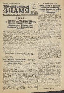 Прд'л^щжи всех ртраи, соединяйтесь! Большевистское ЗНАМЯ OfMr^H Патуш^нск&го PH ВК(Кб) и райсовета депутатов трудящихся ТРИНАДЦАТЫЙ ГОД ИЗДАНИ 11 (1639) СУББОТА 30 ЯНВАРЯ 1943 г ВЫХОДИТ 3 РАЗА 8 НЕДЕЛЮ В последний час Наши войска в основной закончили ликвидацию немецко-фашистских войск, окруженных в районе Сталинграда п | Войска Донского фронта, продолжая наступление против немецко-фашистских войск, окру- (женых в районе Сталинграда, после ожесто* Iденных боев, преодолев многочисленные мощные укрепления противника, закончили в основном ликвидацию окруженной группировки. В дополнение it ранее опубликованным - данным, в ходе боев с 17 по 2б января наши войска заняли важные укрепленные узлы обороны: ПЕСЧАНКА. КУПОРОСНОЕ, совхоз „ГОРНАЯ ПОЛЯНА-, БОЛЬШАЯ РОССОШКА, ХУТОР ГОНЧАРА, ПОДСОБНОЕ Х-ОЗЯдСТВО, ОР- ЛОВКА, ГОРОДИЩЕ, КУЗЬМИЧИ, совхоз „ОПЫТНОЕ ПОЛЕ-, хутор БОРОДКИН, ШИШ- ЛЯНКИН. НОВАЯ НАДЕЖДА, УВАРОВКА, АЛЕКСАНДРОВНА, КАМЕННЫЙ БУЕРАК, войск, разоилаjСТАЛИНГРАДСКИЙ, ОПЫТНАЯ СТАНЦИЯ, сто две дивизии противника, захватила более 200 тысяч пленных, 13.000■ СТУДЕНАЯ ^ ЯБЛОНОВКА, АЛЕКСЕЕВКД, орудий и много другой техники и продвинулась'вперед до 400 кило--ВЕРХНЯЯ ЕЛЬШАНКА, НИЖНЯЯ ЕЛЬШАН- метров. Наши войска одержали серьезную победу. Наступление наших.jКА, СГАРОДУБОВКА, ЗЕЛЕНАЯ ПОЛЯНА, 'ПОЛЯКОВКА, ЛЕСОПОСАДОЧНАЯ, и к а з Верховного Главнокомандующего по войскам Юго-Западного, Южного, Донского, Северо-Кавказского, Воронежского, Калининского, Волховского и Ленинградского фронтов В результате двухмесячных наступательных боев Красная Армия прорвала на широком фронте оборону немецко-фашистских войск, разбила [СТАЛИНГРАДСКИЙ, ■ a у*ч г\{~\ 1^ГР\/ ГГ ЕЛW Д С7 i 111Л П / Наши войск продолжается. Поздравляю бойцов, командиров и политработников Юго-Западного, Южного, Донского, Северо-Кавказского, Воронежского, Калининского, Волховского, Ленинградского фронтов с победой над немецко-фашистскими захватчиками и их союзниками—румынами, итальянцами и венграми под Сталинградом, на Дону, на Северном Кавказе, под Воронежем, в районе Великих Лук. южнее Ладожского озера. Объявляю благодарность командованию и доблестным войскам, разгромившим гитлеровские армии на подступах Сталинграда, прорвавшим блокаду Ленинграда и освободившим от немецких оккупантов города — Кантемировка, Беловодск, Морозовский, Миллерово. Старобельск, Котельникове, Зимовники, Элиста, Сальек, Моздок, Нальчик, Минеральные Воды, Пятигорск, Ставрополь, Армавир, Валуйки, Россошь, Острогожск, Великие Луки, Шлиссельбург. Воронеж и многие другие города и тысячи населенных пунктов. Вперед, за разгром немецких оккупантов и изгнание их из пределов нашей Родины! Верховный Главнокомандующий И. . Москва, Кр-смль 26 января 1943 года. Приказ Верховного Главнокомандующего товарища Сталина вдохновляет н а с на усиление помощи фронту Приказ Верховного Главнокомандующего товарища Сталина вызвал среди трудящихся нашего района огромный под'ем. Усилилось движение на предприятиях по успешному выполнению и перевыполнению производственных планов. Улучшают подготовку к весне колхозники и работники МТС. Ниже публикуем первые отклики на исторический приказ Верхов Главвокомандующего товарища ттого Сталина. Боремся за высокую урожайность С большой радостью мы чи- 1 Особенно'заботятся об удоб- таем приказ Верховного Глав-фениях наши л