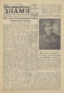 Пролетарии всех стран, соединяйтесь! Шашешстс&ое тдмя чЛО .Н М 2ж Орган П ет уши нс ко го Р К В КП( б) и райсовета депутатов трудяищхся I ЧЕТЫРНАДЦАТЫЙ год ИЗДАНИЯ 32 (1734) ВОСКРЕСЕНЬЕ 25 июня 1944 г. ■ ВЫХОДИТ 1 РАЗ В НЕДЕЛЮ Цена ю ноп. Военные и политические итоги трех лет войны со всей очевидностью говорят о том, что гитлеровская Германия уже проиграла войну и близится час ее полного разгрома. Армии СССР, Великобритании и США со всех сторон штурмом пробивают себе путь к важнейшим жизненным центрам фашистской Германии и не за горами время, когда будет возвещено о торжестве этих усилий. (Из сообщения Совинформбюро) Три года Отечественной войны Советского Союза (военные и политические итоги) Сегодня исполнилось три года со дня злодейского нападения разбойничьих немецко-фашистских банд на Советский Союз. Три года советский народ мужественно ведет Отечественную войну против наглых захватчиков. Народы нашей страны с первых дней войны единодушно поднялись на защиту своего Отечества. Красная Армия в тяжелых кровопролитных боях на фронте в три тысячи километров сдерживала многомиллионную, оснащенную новейшей военной техникой, немецко - фашистскую армию, наносила ей огромный урон в людях и вооружении. Военная фашистская машина, огнем и мечом прошедшая по городам и селам десяти европейских стран, в боях против нашей армии дала осечку. Уже в первый год войны Красная Армия учинила немцам побоище тод Москвой, разгромив от эр- ные ударные враже кие войска. За последние полтора года, со времени разгрома немецко-фашистских войск под Сталинградом враг уже не смог оправиться. Советские войска, развернув наступление по всему фронту, взломали мощные оборонительные системы немцев под Сталинградом, Орлом, Смоленском, Ленинградом, на реке Миус, на Днепре, под Перекопом, Севастополем, на Карельском перешейке, на реке Свирь, форсировали крупные водные преграды—Дон, Северный Донец, Десну, Волхов, Днепр, Южный *Буг, Днестр, Прут, Серет, Нарву, Свирь и показали тем самым, что все валы и крепости, о которых так много болтали гитлеровцы, не могут устоять, если за разрушение и преодоление этих валов и крепостей всерьез берутся испытанные и закаленные в боях войска. Умелой стратегией Верховного Главнокомандования, продуманной и решительной тактикой советских генералов и офицеров, геройством и воинским мастерством своих воинов, наконец, своей могучей военной техникой Красная Армия нанесла ряд серьезных поражений об'единенным отборным армиям немцев, итальянцев, румын, венгров, финнов. Навсегда войдут в историю великие победы наших войск под Москвой, Сталинградом и на Кавказе, под Орлом и Смоленском, под Ленинградом и в Донбассе, на Днепре и в Крыму, в районах Правобережной Украины, Днестра и на Карельском перешейке. За время наступательных боев советские войска освободили около полутора миллионов квадратных километров оккупированной врагом территории, продвинулись на запад почти на 2000 километров, вышли на большом протяжении фронта к нашим границам и вступили на территорию Румынии. Победы Красной Армии принесли освобождение от фашистской неволи миллионам советских людей. Наши войска лишили немцев источников промышленного сырья и продовольствия в оккупированных ими областях, а «жизненное пространство» на востоке, о котором мечтали гитлеровцы, стало могилой