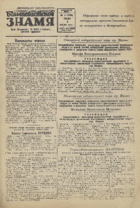 Пролетарии всех стран, соединяйтесь* Большевистское ЗНАМЯ Орган Петушинского Р К ВКП(б) в Райсовета депутатов трудящихся п ятнадцатый го д издания -1 _ ^ •тЗДрОШИИ ^ № 2 (1810) СРЕДА 9 ЯНВАРЯ 1946 г. 1ЫХ0ДМТ 2 Р Ш Ё НЕДЕЛЮ цена 10 коп Неразрывна связь партии и народа,, несокрушима крепость Сталинскою бл&' ка коммунистов и беспартийных. Кандидаты народа Наша Родина переживает замечательные дни. Советский народ выдвигает своих лучших сынов и дочерей кандидатами в депутаты Верховного Совета СССР. Первым своим кандидатом в депутаты Верховного Совета СССР все народы Советского Союза выдвигают великого учителя и любимого вождя Иосифа Виссарионовича Сталина. Имя Статна, как всенародного кандидата, звучит везде,- где только проходят предвыборные собрания трудящихся. С большим под‘емом трудящиеся выдвигают "соратников великого Сталина—руководителей партии и правительства то^ варищей Молотова, Калинина, Ворошилова, Кагановича, Андреева, Микояна, Жданова, Хрущева, Маленкова, Берия, Шверника, Вознесенского. С любовью произносит советский народ их имена. Вею свою жизнь они посвятили служению народу. Вместе с руководителями партии и правительства советский парод выдвигает кандидатами в депутаты Верховного Совета СССР людей, прославившихся своими подвигами в тылу и на фронте, своим самоотверженным трудом, своим вкладом в дело Победы. Колхозники липенского колхоза нашего района выдвинули кандидатуру т. Лебедева Андрея Ивановича, старейшего производственника хрустального завода, замечательного мастера алмазной грани, который всю свою жизнь связал с судьбой своего завода, который самоотверженно трудился и в годы мирного строительства и в годы Великой Огечесгвевной войны. Решение липенских колхозников было единодушно поддержано на предвыборных собраниях трудящихся нашего района и в том числе на проходившем районном предвыборном совещании. Также единодушно поддержано на предвыборных собраниях трудящихся нашего района и решение коллектива фабрики имени Лакина о выдвижении кандидатом в депутаты Повета Национальностей т. Седина Ивана Корнеевича— Героя Сщиалиетического Труда, Народного Комиссара тек стильной промышленности, славного патриота нашей Родины, неоднократно награжденного орденами а медалями Советского Союза. а Наши капдидаты-это люди выращенные и воспитанные партией Лениаа — Сталина. Честным выполнением своего долга перед Родиной они показали, что способны и впредь бороться за дальнейшее процветание советской отчизны, что они способны и впредь честно тужить своему народу. Коллектив завода «Ленинская кузница» выдвинул кандидатом в депутату Совета Союза Никиту Сергеевича ХРУЩЕВА завкома тов КИЕВ, 2 января..(ТАСС). Сегодня в пять часов рабочие, служащие, инженеры и техники завода «Ленинская кузница» собрались, чтобы выставить своего кандидата в депутаты Верховного Совета СССР. Общее собрание открыл Iсаядр Иванович Пузанист председатель Кацовский. 14а трибуну поднялся уое ленный седиаами старый кадровик завода с 42-лете и м про- ‘ изводствениым стажем, сле- !сарь-инетр^ментальщик АлекРечь стахановца-слесаря инструментального цеха А. И. —Товарищи рабочие и служащие, инженерно-технические работники! Я предлагаю выдвинуть кандидатом в депутаты Совета Союза Верховного Совета СССР иерного соратника великого Сталина, руково