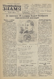 Пролетарии всех стран, зоединяй'п* а н и Большевистское З Н А М Я Орагн Петушинского РК ЗКП( 6 ) иРайсовета депутатов грудящихся ЕЕШШШ! ГОД I __ДЭДШЯ ____ _ № 50 (1910) ПЯТНИЦА 7 кояйря 1947 г. ВЫХОДИТ 1 Р*3 | КЕДУ® цена 30 наш Да здравствует великая партия большевиков, партия Ленина—Сталина закаленный в боях авангард советского народа, вдохновитель и организатор наших побед! Да здравствует вождь партии и советского народа родной и любимым товарищ Сталин! Да здравствует 30 годовщина Великой Октябрьской * * * социалистической революции! * * * Вперед, к победе коммунизма! Сегодня советские люди и все прогрессивные люди всего мира отмечают величайший всенародный праздник —30-летие существования родного социалистического государства. С чувством законной гордости обозревает наш народ сегодня путь, пройденный нашей страной, за минувшие три десятилетия. Величайшими победами ознаменован этот путь. Все изменилось на огромном пространстве нашей Родины. Не убогой и бессильной, какой она была раньше, а могучей, сильной великой социалистической державой предстает перед нами Советская страна сегодня. Народы нашей Родины, руководимые славной партией Ленина —Сталина, показали, что они умеют великолепно управлять своей страной и по-хозяйски распоряжаться ее богатствами. Мы теперь не имеем нужды кланяться в ьояс заграницей. На свои средства, своими силами мы накопили свои богатства. На своих заводах и фабриках, в социалистическом сельском хозяйстве мы производив все то, что необходимо для укрепления государственной, экономической и военной мощи Советского Союза. Что дало нашей стране пройти через все испытания и не только выдержать их, но и достигнуть небывалого развития материальных и духовных сил, добиться всемирно-исторических побед?. Великая и неодолимая сила нашей страны и нашего народа—во всепобеждающем учении марксизма-ленинизма, великих идеях и делах партия Ленина — Сталина, великой любви советского народа к своей Родине и сплоченности его вокруг большевистской партии. Обезграничной любви к Родине, к большевистской партии свидетельствуют многочисленные примеры высокопроизводительного труда, которым отвечают всенародный праздник трудящиеся нашего района. Заботясь о благе государства, об интересах Родины, рабочие, инженерно-технические работники челночного производства, заготовительный и катушечный цеха комбината им. Коминтерна, завода «Силикат», уже выполнили родовую программу, где насчитываются многие сотни рабочих, начавших выполнение плана третьего года сталинской пятилетки. Или возьмем патриотические дела нашего колхозного крестьянства. В текущем году колхозники района 25 сентября завершили план хлебосдачи досрочно, сверх плана сдали сотни пудов хлеба. Завершено 'Выполнение плана сдачи государству картофеля, овощей и мяса. Советские люди гордятся тем, что наша Родина идет в авангарде народов, борющихся за мир, за торжество демократии. К ней обращены взоры человечества, к ней обращены его надежды. В Советском Союзе все народы мира видят непоколебимый оплот мира, стойкого борца против поджигателей новой войны, против претендентов на мировое политическое и экономическое господство. Неодолимо движение нашего народа вперед. Путь нашей жизни проверен тридцати летним опытом борьбы и созидания. Партия большевиков, великий учит ель