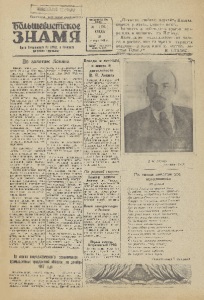 Пролетарий всех Стран, соединяйтесь! Большевистское знамя Орган Петушинского РК ВКП(б) иРайсовета депутатов трудящихся В06ЕМЩЦШ1Й ГОД издания __ № 4 (1927) СРЕДА, 21 января 1948 г. ВЫХОДИТ 1 Р13 ВНЕДЕЛЮ цена 15 коп „Помните, любите, изучайте Ильича, нашего учителя, нашего вождя. Боритесь и побеждайте врагов внутренних и внешних—по Ильичу. Никогда не отказывайтесь от малого в работе, ибо из малого строится великое,—в этом один' из важных за- ветов Ильича" й. СТАЛИЯ. По заветам Ленина Двадцать четыре года тому назад, 21 января 1924 года, в Горках под Москвой умер Владимир Ильич Ленин-велшшй учитель и вождь народов, основатель советского государства, организатор и руководитель большевистской партии, основоположник строительства бесклассового коммунистического общества. Ленин мечтал о том, чтобы Русь перестала быть убогой и бессильной, чтобы она стала могучей и обильной. Партия, советский народ, идя по пути, указанному Лениным, вопреки козням внешних и внутренних врагов, добились всемир- во-исторических побед. В стране была создана крупная современная социалистическая промышленность. Совтеское крестьянство, об'едиеившись в колхозы, бесповоротно встало на путь социализма. Экспло- ататорские классы как в городе, так и в деревне были ликвидированы. Под руководством партии Ленина —Сталина советский народ, преодолевая все трудности и испытания, выполнил главный завет Ленина: построил, в нашей стране социалистическое общество — первую ступень коммунизма. Партия большевиков, партия Ленина—Сталина сплотила вокруг своего знамени весь советский народ, завоевала любовь ж доверие трудящихся, стала руководящей ж направляющей силой советского государства. Партия большевиков—»то «ум, честь и совесть нашей эпохи», говорил Ленин. Двадцать четыре года мы живем и работаем бея Ленина, но и сегодня наш родиой Ильич с нами, о* всюду, он везде, он во всех наших делах. Пламенный патриот совтеской страны, своейРодины, Владимир Ильич всегда верил в творческие силы народа, верил в его непобедимость. Инаш народ вышел победителем в борьбе молодой советской республики с интервентами и белогвардейцами в годы гражданской войны, вышел победителем в борьбе с послевоенной разрухой и под водительством гениального полководца И. В. Сталина одержал блестящую победу над гитлеровскими полчищами в Великой Отечественной войне 1941—1945 годов. Победили сила и жизненность советского строя, советского государства, которое открыл и создал Ленин. Никакое другое многонациональное государство не выдержало бы тех громадных трудностей, которые выдержало наше, совтеское государство в эти суровые годы. —Сталин—это Ленин сегодня!—говорит советский народ. Для него имя Сталина, верного продолжателя дела Ленина, символ могущества, счастья и процветания нашей великой Родины. Сталин говорит: «Помните, любите, изучайте Ильича, нашего учителя, нашего вождя. Боритесь и побеждайте врагов, внутренних и внешних— по Ильичу. Никогда не отказывайтесь от малого в работе, ибо из малого строится великое, — ь | этом один из важных заветов Ц Ильича». С большими достижениями ; в борьбе за досрочное выпол* нение сталинской пятилеткиI вступил советский народ в ,] 1948 год. Уже многие ранью войны залечены, многое восстановлено. В конце прошлого года партия и правительство провели важнейшие мероприятия—денежн