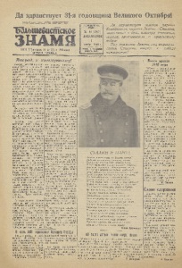Да здравствует 31-я Пролстг арки всех стран, соединяйтесьI Большевистское З Н А М Я Орган Пе ут шикско ог Рй ВйЗД и Р йас ове ат _________ депутатов трудщяхися годовщина Великого Октября! Да здравствует великая партия большевиков, партия Ленина— Сталина, закаленный в боях авангард советского народа, вдохновитель и организатор побед! Под зналгенем Ленина, под водитель- ством Сталина, вперед к победе коммунизма! зосшщдшй гем ___ щ ш я _____ № 45 (1967) ВОСКРЕСЕНЬЕ 7 ноября 1948 г. I ВЫХОДИТ 1 РАЗ В НЕДЕЛЮ цена 15 коп. Сегодня советский народ отмечает XXXI-ю годовщину Великой Октябрьской социалистической революции. Советские люди с чувством законной гордости празднуют эту славную дату. За минувшие годы со дня установления Советской власти в нашей стране —самого передового общественного и госуда ретвевного строя—наша Родина показала народам всего мира путь спасения от капиталистического рабства и создания свободной, независимой и счастливой жизни, путь построения социализма. За тридцать один год, прошедший со дня социалистической революции, наша Отчизна стала могучей индустриальной и колхозной державой. Советские люди успешно залечивают раны войны, отдают все свои силы и эвергию быстрейшему восстановлению и развитию народного хозяйства. 31 год Советской власти ознаменовался новыми победами нашего героическою народа. План третьего квартала третьего решающего года послевоенной пятилетки по валовой продукции всей промышленности СС Р выполнен на 107 процентов. Валовая продукция промышленности за 9 месяцев нынешнего года превысила средний уровень довоенного, 1940 года на 14 процентов. Сверх плана выпущено значительное количество металла, угля, машин и оборудования, стекла, ткани, муки, растительного масла, мыла и т. д, Свидетельством нарастающей борьбы за досрочное выполнение и перевыполнение программы пятилетие го плана является досрочное завершение производственных заданий предприятиями: «Трудовой кол лектив», «Труд», «Катушка» к 7 ноября. Советская деревня, беспрерывно во все возрастающих количествах получая сельскохозяйственные машины, тракторы, комбайны, молотилки, тракторные плуги, сеялки, культиваторы, минеральные удобрения, с помощью большевистской партии и советского государства добились в этом году нового повышения урожайности, расширения досевВаловый урожай. зерновых культур достиг уровня довоенного 1940 года, а урожайность с гектара зер новых культур превысила довоенный уровень. Ярче всяких слов говорят примеры из жизни района о росте урожайности. Колхозы имени 8 Марта, Аббакумовско- го сельсовета, „Двигатель», Близвецовского сельсовета при плане урожайности ржи 11 центнеров с каждого 'гектара, собрали до 20 центнеров. Они, да и не только они, значительно перевыполнили план урожайности зерновых, овощей и картофеля. Животноводы района, борясь за неуклонный рост поголовья скота, имеют большие успехи. В настоящее время мы имеем скота на фермах больше, чем имели до войны—по крупному рогатому скоту на 1093 головы, овец—1703 головы, свиней—387 голов. Поднимается благосостояние трудящихся масс Возрастает продажа продовольственных и промышленных товаров: хлеба, сахара, кондитерских изделий, хлопчатобумажных, шерстяных, шелковых тканей, кожаной и резиновой обуви. Новую славную годовщину ваша Родина встречает в обстановке борьбы за прочны