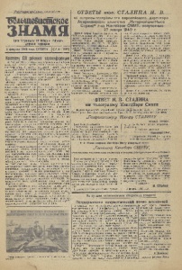 Пролетарии всех стран, соединяйтесь ОТВЕТЫ тов. СТАЛИНА И. В. Большевистское ЗНАМЯ Орган Петушинского РК ВКП(б) и Райсовета ______ депутатов трудящихся _____ 5 февраля 1949 года СУББОТА (№ 6-1991) Навстречу XIII районной партконференции 26 февраля 1949 года открывается XIII районная партийная конференция. В знак беспредельной любви к большевистской партии и выражения своей сплоченности вокруг Ленинске—Сталинского Центрального Комитета ВКП(б) работники промышленности, сельского хозяйства и учреждений готовят -достойные производственные подарки ко дню ее открытия. Фабриками «Труд», «Трудовой Коллектив», комбинатом имени Коминтерна будет выполнен и перевыполнен производственный план февраля к этой знаменательной дате. Коллективы Старо—Петушин- ской и Петушинской МТС завершат выполнение планов осенне-зимнего ремонта тракторов и сельскохозяйственных машин. Такие же подарки готовят и другие предприятия, организации и учреждения. Вместе с рабочим классом, идя навстречу XIII районной партийной конференции, полны- решимости отметить день ее открытия колхозники, колхозницы и специалисты сельского хозяйства. До дня открытия партийной конференции осталось двадцать дней. В этот небольшой срок парторганизациям предприятий надо провести большую организационную и партийно-политическую работу с тем, чтобы обеспечить досрочное завершение заданий промышленными предприятиями по выпуску продукции и за счет мобилизации неиспользованных резервов с‘ экономить наибольшую сумму денег, высвободить сотни тысяч рублей оборотных средств. Сельским партийным организациям предстоит решить не менее важные задачи: завершить засыпку семян, ремонт сельскохозяйственных машин, инвентаря, завезти со станций железной дороги мак- симадьное^количество удобрений, собрать как можно больше золы и птичьего помета. Весьма важной задачей является мобилизация всех сил на самое быстрое окончание заготовки и вывозки дров, на усиление внимания к развитию общественного животноводства. Значение перечисленных задач, стоящих перед сельскими партийными организациями трудно переоценить. Однако, в ряде сельсоветов они пока решаются неудовлетворительно. Исключительно медленно идет засыпка и сортирование семян в колхозах Ларионовского, Воспушинско- го, Дровновского и других сельсоветов. Вывозка навоза, завоз и сбор минеральных удобрений здесь идет по сей день очень плохо. Недопустимо медленно выполняется важнейшее задание партии и правительства— план заготовки и вывозки дров колхозами Дровновского, Васильковского, Воспушинско- го, Караваевского и других сельсоветов. Перед колхозами района стоят неотложные задачи роста поголовья скота и повышения его продуктивности. С первых дней нового года должна повестись самая решительная борьба за сохранение поголовья скота и особенно молодняка. Решение перечисленных задач не может быть обеспечено без дальнейшего улучшения организационной и партийно-политической работы в массах со стороны первичных партийных организаций. Расширение связи с массами, широкое развертывание социалистического соревнования и вовлечение в него всех слоев населения, усиление культурно-массовой работы—вот, что приведет к безусловному выполнению стоящих задач накануне XIII районной партийной конференции. Плакат художника Кащеева, выпущенный 