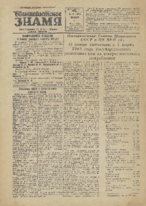 % 3 марта 1949 год? Ча Ю БОЛЬШЕВИСТСКОЕ 3Н И Я Постановление Совета Министров СССР и ЦК ВКП(б) О новом снижении с 1 марта 1949 года государственных розничных цен на товары массового потребления (Продолжение) ( на 25% ГСТ оет клроос тчв еинвыл ыь нше уаиябв оа гдрыаьлна(ыншет елярипе зя ды е ил ияк е п и ) н на на 1а1 551%5%% Меха на 10% ( И М М т п е з е о е д т т с р е а у ае л л л д ял л и а я и , о и х б ч з и о ы е з с з к т я к п о ой а в ж л с я ы а зт се ав т г м е м п а н е л а р н н аи с ы и н б т т о ее ы р е л и р е е ы д й и я е л д и л р уу л г г и а о л е й ) а д н а н ­ ан2а01%0% товары т(Энрлоое чжк аитйр, но ихвокииЗля, кйисэ , лт велкеонтжнр ыко ипе л тииотвк аидр, ыр уэ(глэиелеке) к н а 1 0 % троутюги и другие) на 10% Скобяные изделия на 20% Шорные товары на 20% Цемент на. 30% Мотоциклы на 15% Велосипеды на 20% Радиоприемники ' на 20% ннаа 2300%% н н н а а а 2 2 3 0 0 0 %%% н на а 1 2 0 0 %% Состав районного комитета ВКП(б) избранного ХЩ районной партийной конференцией Члены Райкома ВКП(б) ЮР одмианнао вТ .МФ. . Г . Г П у и с с е ц в о в А . Н . А Г . . О П з и е с р ц о о в в И М . . И И . . ЖП реулстаокво вА .МП. . И . К П у у з ч ь к м о и в н С А . . П М . . П П Т а и ел т а г е е н а ф в и р и о н м з н о о ы о , рныаикико рде он ы баян ы и Г рапмлма ос тфои нннк иые и патефонные ч ' ПФ ЮЧ и ао в с ш т е ы Сни о з л и у а и щ т п р ь п и н ае с р ы о а е о м т ы т а в ш и е и и з тс д н т е б к в л е и и н и н я нооклциены в ресторанах, )Никонова А. Е. столовых цаДяых и других предприятиях. о „ п р п' общественного питания, ^ IЗаикин М. А.' ' б) Поручить Министерству торговли СССР ]Севостьянов Г. И, установить в соотвест вии с настоящим по-1 д0Внао В В. становлением новые сниженные государст-;р ' п ' н ввенпнуынекте розничные цены на перечисленные Е в г р а ф о в Д . ^ э - «а» настоящего постановления Председатель Совета Министров С С Сн прРы о едо тв оолвьарСст ы ве. екннрыее,т фаурраьж нЦыеК и пВроКмПыш л(ебн)­ И. СТАЛИН Г. МАЛЕНКОВ 28 февраля 1949 года П О СС ОТ ВА ЕНТОСВКЛИЕЕН ИЛЕЮ ПД АИ Р ТГ ИО ИР Я ИЧ ОП РОАДВОИБТРЕЯЛЮЬ СТТ В А Милюков В. М. Графов А. К. Клюев Д. С. Маракушев В. А. Евлампиев И. В. Васильев А. В. Д Ч у и р ст а я со к в ов а М, Г. И. Г, С С и а х д а н р и о х в и н Л М , . Н . Н , ГГрриишб аинно вАа . АВ,. Р . К ЛЛ и о яп г р и и а н к ч и о ен в н к В о Н . . И Ф Д . . . С , ДС умвиаренво вВа. МЛ .. Е . * ф * * * * * * Сердечное спасибо товарищу Сталину Х ео щч еет сляу чрша еб ,о теащт ье производительнее Вн КисЩПт орбсо)т, ва н оСволюе нз аи е С СС Ров е тиа МЦиК передававшееся по ржт иае рдниые ор ор наббыто сечтхирнхои, ч еосрбклаибе тхоетлнроиац б, ко внтаи рин ­ ков и служащих фабрики мр« ииКктаиет ну гш.с ко аст» .о ял 1ся м амртн ао г онла дюнфыайб ­ вл ые снСит уипс оип олаб рщнтеаинч иаиели мь нп ир као в и тпт еоолскьта сартннвооав ­ заготовительногоцеха тов. н о п Т и н р у и а , р — — в кц и П и в е с т о н е н ле с . л ь т , я с а е т н н в т о а ав л в о е т н о с н и в о о е а в в р ое ы м тс , п — к а с и р н с х т и к и а ж л и з е ю ал и дпР еуо тдй ии чн куу , в кстуоввмое мр геу оннрнидозо мс туии. д у щзКауа южс двыоп йою з в с и а я з с р е п н н л л а а а м у с т ч а ш в ж и е р и а д т и б и ь т о . ч л ии Р у х а ч о с ш щ т и е е у т щ р с и а е т е н а т а т л , н е ьл о н к л ив а а и т я к ргс еяу нб цлпияо и. к , у Спноаетвуекс лле ьомннаняио н ас пяпо одс нко иабрмнотаисе нтт аь т в с с щ т р кы а у а е п л д з т у а а и с л .т к ы е ь а Ч с щ от я т ь е н о б е ы щ б в е ог н а л з а ч а ш у е к ч , а л ш юе ч н , с ет а н б р и м о а е н л н , а ьш а ,— —д е о продукции личного качества. Слово взяла стахан