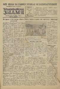 ВСЕ СИЛЫ НА УБОРКУ УРОЖАЯ ИХЛЕБОЗАГОВТКИ! Пролетарии всех стран, соединяйтесь) Большевистское ЗНАМЯ Орган Петушинского РК ВК П( б) и Райс овета _________ депутатов трудящихся I ДЕВТЯНАДЦАТЫЙГОД _____ « ДАНИЯ __ №26 (2011) СРЕДА 20 июле 1940 г. 1 1 ЫХ 0Д МТ 1 Р АЗ В НЕДЕЛЮ цена 15 нал Передовые *колхозы района начали уборку нового урожая. Труженики колхозных полей! Равняйтесь на передовиков уборки. Уберем урожай в сжатые сроки и без потерь, досрочно расчищаемся по хлебопоставкам с государством! Во время и без потерь убрать урожай Из колхозов: имени VI с'езда Советов, им. Ворошилова, «Красный бор», «Передовик» и других поступаютрадостные вести—здесь начали уборку нового урожая. Убраны первые гектара озимой ржи. . За первые дни работ колхозники бригады Левиной из колхоза им. VI съезда Советов Омутищенского сельсовета убрали 10 гектаров хлебов. На уборке работает жнейка. . Фронт полевых работ ширится с каждым днем. Труженики сельского хозяйства пожинают замечательные плоды самоотверженного труда. Последние погожиедни ускорили созревание хлебов.Вот почему сейчас приступить к уборочным работам без промедления нужно в каждом колхозе. Правильно поступилипередовые колхозы района начавшие уборку выборочным путем. «Уборка, —указывает товарищ Сталин,—дело сезонное. Убрал во-время —выиграл, опоздалв уборке—проиграл». Поэтому нужно дорожить каждым днем, каждым часом, мобилизовать все силы и средства, чтобы убрать урожай вовремя, без потерь и досрочно выполнить первую заповедь перед государством. Своевременное начало жатвы и правильная организация труда на уборке имеют важнейшее значение. Нужно включить в работу все жатки, косилки, комбайны, серпы и косы с тем, чтобы убрать хлеба, недопуская их пересозревания, организовать просушку, обмолот и немедленную сдачу зерна государству, ибо малейше промедлениеи заминка в ходе косовицы неизбежно повлекут к потере урожая. Огромную роль в деле уборки урожая призваны сыграть МТС. Однаков Старо-Петушин- ской МТС еще не завершен ремонтуборочных машин. Руководителимашинон-тракторной станции не придюа твсей политической важности вопросам подготовки к уборке урожая. В своем постановлении о проведении уборки урожая и заготовках сельскохозяйственных продуктов партия и правительство наметили боевую программу действий и обязали партийные и советские органы повысить уровень политической работы на селе и руководство колхозами. Нужно оказать артелям и МТС действенную помощь в быстрейшем завершении уборки урожая. Поучительный примерв этом отношеини коммунистов бол- динской парторганизации должен стать достоянием всех партийных организаций района. Социалистическое соревнование— важнейший метод- проведения уборки и выполнения хлебопоставок . государству. С первых же дней нужно организовать .соревнование среди косарей, жней, вязальщиц и механизаторов.Соревнованидеолжно быть конкретным и боевым, направленным на выполнение и перевыполнение обязательств каждым колхозником, каждой полеводческобйригадой и звеном. Кроме того, 'нужно широко поставить агитационную работу. Перенестиее непосредственно в поле, в бригаду, на молотильный ток. Регулярно освещатьход работ на досках показателей, в стенных газетах и «боевых листках». Уборка урожая—всенародное дело. Большую помощь селу должны оказать промышленные предприя