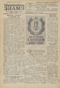 Пролетарии всех стран, соединяйтесь/ Большевистское ЗНАМЯ Оргна Петурнского РК ВНП(б) и Райсовета депутатов трудящихся ДЕВЯТНАДЦАТЫЙ ГОД ИЗДАНИЯ Ш 10 (2048) ЧЕТВЕРГ , 16 февраля 1950 г Выходит 2 раза в неделю цена 15 коп Шире развернем социалистическое соревнв честь выборов в Верховный Совет СССР! Встретим день выборов новыми производственными успехами! Неустанно готовиться к весеннему севу Непрерывно растет трудовой под'ем в колхозной деревне в эти дни. Встретить выборы в Верховный Совет СССР успешным завершением подготовки к весеннему севу—под таким лозунгом развертывается социалистическое соревнование в колхозах и МТС. Члены сельскохозяйствеиной артели «Искра» Нетушинского сельсовета, имени 8 Марта, «В-й решающий» Аббакумов- ского сельсовета, «Ударник» и «Варя» Болдинского сельсовета, «Двигатель» — Близнецьвского сельсовета, взяв на себя обязательство закончить подготовку к севу к 12 марта, .активно борются за выполнение данного ими слова. Семенные фонды в этих колхозах полностью засыпаны, сейчас развернуты работы по доведению семян до высоких посевных кондиций, производится обмен рядовых семян на сортовые. На поля ежедневно вывозятся десятки тонн органических удобрений, идет сбор золы и куриного помета, завозятся минеральные удобрения, ремонтируют сельскохозяйственный инвентарь и транспорт. По вечерам хлеборобы этих колхозов собираются послушать беседу о выборах, почитать газету, популярную книгу о борьбе за высокий урожай. Бригады и звенья проверяют выполнение взятых па себя обязательств, изучают труды Лысенко, Вильямса, Мичурина. Перечисленные факты говорят о том, что подготовка к весне в отдельных колхозах идет более организованно, чем в прошлые годы. Однако не везде поняли значимость своевременной подготовки к севу. В ряде колхозов засыпка семян, их очистка и проверка на всхожесть не организованы должным образом, плохо идет вывозка органических и заготовка минеральных удобрений, неудовлетворительно ведутся работы по ремонту сельскохозяйственного инвентаря. Колхозы Караваевского сельсовета план засыпки семян выполнили только на 67 процентов, Восиушинского — на 72, Кобяковского- на 74 процента. Очистка семян здесь не организована, а в сельхозартелях «Вперед», и «Рекорд» Караваевского сельсовета в ермолинском и норкинском колхозах Кобяковского сельсовета до сего времени семена не проверены на всхожесть. В текущем году все колхозы обязаны перейти па сплошные сортовые посевы зерновых культур. Однако ряд сельхозартелей Васильковского, Ли- пенского, Караваевского и других сельсоветов до сего времени не произвели обмен рядовых семян на сортовые. Крайне плохо организованы работы по вывозке и заготовке местных и минеральных удобрений в колхозах ВОепушин- ского н Дровновского сельсоветов. В Воспушке, например, план заготовки и вывозки удобрений выполнен всего лишь на 5 процентов, а к сбору- местных удобрений здесь еще не приступали. Ремонт сельхозинвентаря здесь идет далеко неудовлетворительно. Составление производственных планов, заданий ,бригадам_ и звеньям еще не закончено. Огромная роль в подготовке к севу принадлежит машинно- тракторным станциям. Несмотря на это около 40 процентов тракторов и других сельхозмашин в Петушинской и Старо- Петушинской МТС ждут ремонта, недопустимо медленно проходит заключени