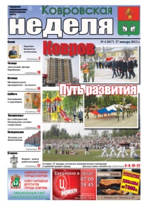 № 4 (017) 27 января 2012 г. Городская информационноаналитическая газета Пятница страница 12 Суббота Воскресенье Понедельник Вторник Среда Четверг страница 13 страница 11 страница 18 страница 2 страница 18 страница 12 Сегодня, 27 января, состоится экономическое совещание в администрации города. Доклад главы читайте на страницах 3–6, 19–22 Горсовет. Комитеты отчитались Аполлоний, Декарт, Барабанов... Муниципальное предприятие – на высоте Посвящение в художники Бал победителей. Награждены лучшие спортсмены Теплица для бизнесменов Ковров – центр робототехники Ковров Путь Путь развития развития реклама