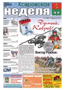 страница 2 Входные и межкомнатные двери, арки Металлические двери: Эконом класс от 3800р. Стандарт класс от 5800р. Премиум класс от 8100р. Комплект межкомнатной двери с установкой от 4800р. рассрочка платежа без % пр-т Мира,2 рядом с ТЦ”Либерец” 8-920-938-88-82 5-52-01 Сорви дверь по оптовой цене! Замер и доставка двери: БЕСПЛАТНО! Без наценок рассмотрим все нестандартные ситуации! УСТАНОВКА ОТДЕЛКА ОТКОСОВ ДЕМОНТАЖ М/К РЕМОНТ ДВЕРЕЙ реклама Суббота Воскресенье Понедельник Вторник страница 11 страница 12 страница 5 страница 9 № 7 (020) 17 февраля 2012 г. Городская информационно- аналитическая газета Думай, Ковров! Пятница страница 4 страница 3 Четверг Среда ДО ВЫБОРОВ ОСТАЛОСЬ + 7 930 744 0004 НИЗКИЕ ЦЕНЫ ПРОЕЗД БРЮСОВА, д. 3 (за центральным Сбербанком) реклама Почетный гражданин Коврова Виктор Рожков возглавляет городскую федерацию мотоциклетного спорта уже более 18-ти лет. При ее непосредственном участии готовились все мотокроссы в Коврове. Вся жизнь Виктора Васильевича связана с этим спортивным событием, с самой первой гонки в 1957 году. Тогда, еще подростком, он прибегал на нее как болельщик. А затем, уже взрослым, много лет состоял в организационном комитете соревнований. История появления Всесоюзного зимне- го мотокросса в Коврове напрямую относоир ту жнеайс нки кз иа в опдоус лием . вВо. Ай .н Дые г сттяарлеив а , окс ов гадиа - вать производство гражданской продукции – дорожного мотоцикла К-125. Очеред- ной вехой в развитии отечественного мо- тб оо цл ие ек лмо ос щт рнооейн имяа сшт иа лн ыв ыКп- у1с7к5 в. Н1 е9 о5б7х го оддиу - мо было испытывать новую технику в экс- тремальных условиях и на критических режимах – ради дальнейшего ее совершен- ствования. Так директор завода, впослед- сВт.Вв.ииБамхиирнеивстрпримнашялинорсетшреонениие я о ССсСоР, - здании группы испытателей-мото- кроссменов, которая и стала основСВ оо. Айю. Дз ед гклтояямр аебнвудад ы(у СщКеСИйпД, о )р. итИзи впв еенсротвгнооое йбколенувабо ае вк иер сме ь . - щ19е5н7игеондоав. ая команда получила 12 февраля Продолжение: страница 9 Виктор Рожков: «Пусть победит сильнейший!» Ковровская медицина в неудобном формате Механический завод. В будущее – с уверенностью! Как построить справедливость? История славного поколения. Гордимся! Спортивный калейдоскоп. Наши беды и победы… Записки телезрителя – 2. Дохлый номер пустобрехов А теперь газ и у нас. Вот!