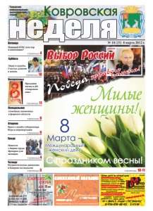 Ковровская неделя 3 № 10 8 марта 2012 г. АКТУАЛЬНАЯ ИНФОРМАЦИЯ событие реклама Нашим единственным Н еЕ щс лее дмио тр, овзи, де щи ме ом, ез ат еклаил. еИн дз аирмеамк. аАкн- таокна ел еснпде ашрие т- тзоа к– авнечс ин ва !а тПьрсия . - знаки надвигающейся неотвратимой весны везде: и небо уже све- тится особым, мартовским светом, и в воздухе разносится запах свежевскрытого арбуза – весенний запах, и воробьи как-то вем суа елр лыт еобйвк сеик омо мга ллсуыошлшинатц, еежл, мьв ну пер ейя рщчв еиыгрхоисмкя еа отютетл. с кВлаеехпс нямащи име говоз ылб ил, цче ста кхо а лб люе ьрддееажй нн, ова п Пнр еир саб езлтдинджиоакмюоэщйт еопгтоо жс– яи слпрарояад зжндиеннипщкр аио нф– аеМ…с ес Виж оед снунанала ьврноо одвмнс уое . ог об Дщже еен мнь с окт щор гуу одщядещнн яии. хи - Р Дос снясеижмиеВн– Дщо Всио–нб . ее Нгн оон онн. еиКсасркаДнвнниеисмтт ьрэ . анНне енр дго ае, ртн иоо мкбаоо, лтньмише сче аДвеснтеесгмяо оэр нтыовбтса пекмра а, мзндиинр дио амк ж, л аею вс - бят… российские мужчины. Еще бы! Ведь в этот день их подруги становят- сИя гвоетсоевлые йз, аккрраыс ит вь егйл, ааз ас анмаоне егслоаввенроше е–н кс ту дв аа дс ио лб ьр не йо й, чпе омлво воис тн аыл ьчне ыл оевде нч еи . - ства. И простить своим спутникам их несовершенство вкупе с остальны- мс оиг лмаес лн кыи нмиич пе рг ое гзрае эшт еонниея мт рие. бМо ив алтыье. Цжвеентщы и, пн оыд ас рт ко ли ьи вме ыл иткь ое дпуошс ундыы, чптоо - сле праздничного застолья – по желанию. Единственное маленькое усло- вие: в этот день нашими дамами надо восхищаться! Любить и восхищатьсе яд ии ннсет вс те енсннаяят! »ь .сВя пг ро ов чо ерми ,тэьт киасжл до ов йа :н«уТжынсоа гмоавяо- рс аимт ьа як –а жл юд ыб ий мд ае ян, ьк, рнаестиовлаья , - кИодвл яМме жу жд чу ни анр, ио дднлыя йт ежхе, кн ос кг ои йо .нИи пт оо гддчаа с– пкраежс дт ыу пйн до емноьлбчуадлеитв по р, на оз длнюибкяотм. . С праздником вас, милые женщины! С 8 Марта вас, единственные наши! Мужской коллектив редакции В эфире местного ТВ Ирина Славина 6 марта в программе «Актуальное интервью» на Первом городском канале глава города Виктор Кауров обозначил две темы разговора – итоги выборов Президента РФ и создание в Коврове Общественного совета Добровольческого движения в поддержку армии, флота и оборонно-промышленного комплекса. – Виктор Романович, 4 марта стало важным днем в жизни нашей страны, состоялись выборы Президента. Явка в Коврове составила 57%, на ваш взгляд, это много или мало? –оэ тч Дое не йьмсвотамвжеи ннт тые лйьиднс лот я, и 4нР ыомс, са ирк ито агдде2ан0 ь1р. 2По сог сосидуяатни–е , обв епу дср оуе мщд ыее леми. плИои тэсетвнооцюиб аус длу удо щмь б, е усе вноеа пс обр мле идыжемла едйношов ее ес - рием лидеру страны Владимиру Пути- ну. Это его заслуженная победа: и буду- чи Президентом, и будучи премьер-министром Владимир Владимирович все- гда приходил на помощь людям, тер- рПиу тс то ор зивяомн, сзтав он и им сотроаянтжрееваыл йь н тыоен д, еклоа . - торый заявлялся во время избира- тбл еоюллдььиншоинг нео с мтп воа ард ад жфе рио жнт еаа л, л кеи й. в Яенлраикшко еое йй п рсо атд дрт оав сне тыри , - жНр аадзебмниоирйеа ттвьозсмгялу яв иод , мг коноловог рсо оомвв. ча на ни ее вн аКу оч ви рл оивс еь . яп врУки енн, яа лпс ироаучкчетанис ьтч иех сеокрвио вшы5и7бй%о рпа охик, затбзеиамрт аес тла емь лыпе мйо пЭ рт оо доедмноонз снтарчинро огвоавво рсивто юо т оа мк т, ич тв он овс 