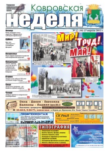 2 3 27 апреля 2012 г. Ковровская неделя № 17 № 17 Ковровская неделя 27 апреля 2012 г. Актуальная информация темы недели темы недели реклама реклама К бою за чистоту! Ковровское отделение общественной организации «Боевое братство» приглашает всех патриотов города на субботник, который состоится 28 апреля в 10.00. Место проведения – сквер у памятника ветеранам боевых действий (ул. Абельмана). Приглашаются ветераны и все желающие. Лучше приходить с собственным инструментом! Песня в шинели Почетное звание «Город воинской славы» налагает самые серьезные обязательства на организаторов всех без исключения мероприятий патриотической направленности. Да и число таких мероприятий должно неуклонно расти, формируя у населения правильную и единственно верную точку зрения на важность, значимость и далеко идущие перспективы обретения городом заслуженного статуса. Дом культуры им. Ленина проводит цикл патриотических мероприятий (это и шахматные соревнования, и праздник для ветеранов, и акции «Фронтовой треугольник» и «Георгиевская ленточка»). Одним из главных станет традиционный ежегодный областной фестиваль-конкурс военно-патриотической песни «Песня в солдатской шинели», посвященный Великой Победе. Он будет проходить в два дня – 7 и 8 мая с 12.00. Конкурс включает в себя два жанра – эстрадная и авторская песня. Участвуют вокалисты всех возрастов из различных уголков Владимирской области, заявки на участие принимаются до 30 апреля. Справки по телефону 3-59-04. Будет капитальный ремонт? На коммунальной планерке замглавы З. Асваров в очередной раз напомнил управляющим компаниям о возможности вхождения в целевую программу капитального ремонта домов на 20132015 годы. Необходимо представить документы о необходимости и стоимости работ, согласие жителей на софинансирование работ. Почти по 14 % пойдет на ремонт из областного и муниципального бюджетов, не менее 5 % от собственников жилья, остальное «подкинет» федеральный бюджет. Вызывает тревогу то, что не все УК активно включились в организационные работы. Аты-баты По информации начальника отдела военного комиссариата по Коврову и району Сергея Зиновьева, на военную службу был отправлен 201 призывник. В основном юноши попали в сухопутные войска Западного военного округа, а так же в воздушно десантные войска, ВВС, ВСМ, космические войска и внутренние войска МВД. По месту дислокации это в основном Западный военный округ. Многие попали на подшефный корабль «Ковровец», в город Севастополь, некоторые – в Хабаровск, но большинство остались в центре России, 22 человека служат в нашей танковой дивизии. Предоставлено около 500 отсрочек – из-за незаконченного обучения и по состоянию здоровья. На первом месте по заболеваниям – психические, на втором – костно-мышечные, на третьем – желудочно-кишечные недомогания. Чтобы исправить ситуацию, ежегодно проводятся лечебно-оздоровительные мероприятия среди юношей. Ежегодно отдел военного комиссариата готовит для войск водителей категорий С, Д, Е. Желающие за полгода проходят обучение в автошколе ДОСААФ, такие специалисты требуются во все воинские части. С этого года практикуются выезды призывников в центр подготовки космонавтов в Королеве, на базу Рязанского десантного училища, где юношам была показана практическая подготовка десантников. Это хорошая форма военно-патрио