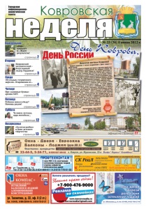 12 Городская информационноаналитическая газета N 23 (36) 8 июня 2012 г, А «РИК» начинает и... Ждем результаты! Д е н ь \ Р о ш 1и т страница | Вторник Ковровский механический - безусловный лидер. Гордимся! страница 3 Среда Об угодьях «червячного короля». Откровения от... страница 4 Четверг Про «длинные буквы» архива ЗАГС страница Пятница Ребенок попал в беду? Помощь рядом! _________________ страница 11 Суббота Человек-легенда, царь мотобола. орогие жители Коврова Примите искренние и тенпые рездрееиеиии е Пне» гореде и е редине» и Ж К Й . ' « город - единственный и неповторимь . причастность к родной дом. И поэтому в День ^/^ыпало сТастье жить и работать его истории, судьбе и! X» Сгопков России с богатой историей, замечав одном из прекрасных Уго,1ков п. тпипТиЧеским отношением к свое- тепьными традициями вособь'^ Коврова, которое му городу, стране. |^ | ^ Я ^ “ награ^ н - орденом Трудовооценено высокими государственными на^ н воинской славы>> го Красного Знамени и годом становясь уютнее Ковров активно Р Д * ™ н а Г е Г о Грода -это люди: трудолю- и красивее. Главное богатство наше^г ^ ^ ие Наши специали- бивые и настойчивые, талант „.. побеждают на мировых сты пользуются авторитетом, с Р всероссийскихолимписоревнованиях, за рубежом.Все, ад, у творческих коллективов У поколений наших земляков, чем знаменит Г0Р°Д’" зас »овп0вчане мы говорим большое спа- Обращаясь к вам, Д°Р°™е ^ вР° зап0бросовестный труд, за лю- сибо - за ваши таван^ э.н® К е любовь и достаток будут в кажк у д а з д а д а жизненном пути! Кауров, глава города Вячеслав Арсентьев, председатель Совета депутатов страница Воскресенье «Золотая рыбка» в Доме детского творчества 13 Все фото Б. Никитина страница ___ -•- _ _дйт. ^ афиша на странице ПРОФТЕХМОНТАЖ • окна ПВХ • АЬконструкции & • остекление балконов, лоджий • отделка сайдингом ул. Подлесная, д. 14. • межкомнатные двери ■ш " Тея. 5-32-1 а 6-68-За 8-304-955-81 -14,8-815-776-81 -82 Щ Шя ОСТЕКЛЕНИЕ БАЛКОНОВ И ЛОДЖИЙ АЛЮМИНИЕВЫМИ КОНСТРУКЦИЯМИ ул. Талантова, д. 22, оф. 8 (2 эт.) Тел. 6-34-05, 8-904-259-64-14, 8-910-773-57-27 | Хотите увеличить продажи? + 7- 900- 476-9000 Рвкла“ 2 скамейках е-таН: ко\ жжж.коугоутеШа.ги оугоутеШа@дтаМ.сот ■г- >кна, двер жалюзи ''л""п,авни ул. Абельмана, д. 4; тел. 65-993, 8-915-766-17-95