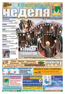 Ковровская Городская информационноаналитическая газета страница 14 окна, двери жалюзи рольставни остекление лоджий ул. Абельмана, д. 4; тел. 65-993, 8-915-766-17-95 реклама неделя№ 42 (55) 19 октября 2012 г. Воскресенье страница 16 Суббота страница 12 страница 2 Среда Понедельник Вторник страницы 2, 3 страница 11 ÏÐÎÔÒÅÕÌÎÍÒÀÆ окна ПВХ AL-конструкции остекление балконов, лоджий отделка сайдингом межкомнатные двери 5 лет гарантии • пенсионерам – скидка óë. Ïîäëåñíàÿ, ä. 14. Òåë. 6-68-38, 5-32-19, 8-904-955-81-14, 8-915-776-81-82 от 13500 от 13000 от 10000 реклама © КН. 2012 неделя Ковровская Частные объявления БЕСПЛАТНО: 6-44-07, kn-bizness@mail.ru москитная сетка и термометр в подарок реклама ÄÎ10 % ÑÊÈÄÊÈ 18+ Фото Б. Никитина реклама Четверг страница 3 Пятница страница 4 в городе талантов Таланты мира Черный дол. Велосипед всем возрастам покорен Ащерино. Свалка преткновения. С места событий Солдатский форум номер два. Патриотами не рождаются? Действительно ли для больных детей деньги всегда найдутся? Мир равных возможностей – для всех! Оставивший свой… свет. Памяти художника Какой пьяный не любит быстрой езды?