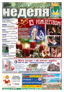 неделя Понедельник неделя Ковровская Частные объявления Бесплатно: 6-44-07, kn-bizness@mail.ru ДО3,5 % скидки 18+ Ковровская Городская информационноаналитическая газета реклама страницы 12-13 реклама © КН. 2012 реклама © КН. 2012 l рассрочка без процентов l выезд на дом бесплатно Ощущение реальности Ковров, ул. Шмидта, д. 14а, 2 эт., оф. 26 Тел. 9-69-00, 8-910-179-92-84, 8-900-477-93-82, 8-930-742-26-09 наливные Суббота страница 5 страницы 3-16 Среда Вторник страница 2 Четверг страница 4 Пятница страница 5 – автономное отопление – отличный район – удобные планировки – доступные цены – надежный застройщик ÎÎÎ «ÑÓ ÄÑÊ» – íàäåæíûé çàñòðîéùèê è ïàðòíåð Æèòü ëó÷øå – íå çíà÷èò äîðîãî По вопросам приобретения квартир обращайтесь по адресу: Ковров, ул. Строителей, д. 15, стр. 1; тел. 4-72-36, 8-910-090-03-48 Проектная декларация размещена на сайте СУ ДСК: www.sudsk.ru Св-во о допуске к работам №0005.042009-3305050900-С-107 от 6.03.2012 г. 17-этажный кирпично-панельный дом на ул. Строителей, д. 29 «Березовая роща» более 50% продано Новогодние цены – от 27985 рублей за кв. м – элитный дом – уютная квартира – хорошая жизнь! поселок Мелехово, ул. Пионерская, д. 4 От 27000 рублей за кв. м реклама © КН. 2012 Планируемый срок ввода в эксплуатацию - III квартал 2013 г. Желаем вам встретить Новый год в новой квартире Воскресенье страница 14 № 1 (66) 3 января 2013 г. Когда рождественская ель Горит на Рождество, Она сквозь зимнюю метель Приносит в дом тепло. И в этот день календаря, В мороз и холода, Мне о рождении Царя Напомнит та звезда. И что бы ни было в пути, Я верю неспроста, И знаю, Отче, нас спасти Ты в мир послал Христа. C рождеством! страница 2 В подарок – цветной календарь от «Ковровской недели»! На электромеханическом заводе – открытие. Медицинского центра Праздники продолжаются. Продолжаем поздравлять Новогодние чудеса. И ЖКХ на них способно… Для нового поколения – новые школы! Патриотами рожаются или их надо воспитать? В здоровом «Вымпеле» – здоровый дух!