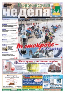 неделя 18+ Ковровская Городская информационноаналитическая газета неделя Ковровская Частные объявления БЕСПЛАТНО: 6-44-07, kn-bizness@mail.ru реклама реклама © КН. 2012 – автономное отопление – отличный район – удобные планировки – доступные цены – надежный застройщик ÎÎÎ «ÑÓ ÄÑÊ» – íàäåæíûé çàñòðîéùèê è ïàðòíåð Æèòü ëó÷øå – íå çíà÷èò äîðîãî По вопросам приобретения квартир обращайтесь по адресу: Ковров, ул. Строителей, д. 15, стр. 1; тел. 4-72-36, 8-910-090-03-48 Проектная декларация размещена на сайте СУ ДСК: www.sudsk.ru Св-во о допуске к работам №0005.042009-3305050900-С-107 от 6.03.2012 г. 17-этажный кирпично-панельный дом на ул. Строителей, д. 29 «Березовая роща» 68% продано Цены – от 27985 рублей за кв. м – элитный дом – уютная квартира – хорошая жизнь! поселок Мелехово, ул. Пионерская, д. 4 От 27000 рублей за кв. м реклама © КН. 2012 Планируемый срок ввода в эксплуатацию - III квартал 2013 г. страница 14 Пятница страница 3 Четверг страница 3 страница 2 Среда страницы 6, 13 Воскресенье страница 5 Фото Б. Никитина № 9 (74) 1 марта 2013 г. Вторник страница 3 Суббота страница 4 Понедельник ЭТО НАШЕ ВСЁ Ковров, ул. Пугачева, д. 32, офис 3 ÎÊÍÀ Тел. 3-94-77 8-915-790-20-31 реклама © КН. 2013 Для тех, кто умеет ЭКОНОМИТЬ Официальный представитель www.keookna.ru Цены от крупной организации, без посредников ëåò ГАРАНТИЯ 5 О вечном. Послание из прошлого Лидии Земской Оборонка Коврова всем родам войск интересна Конкурсное законодательство на защите «опоздунов» Итоги февраля в исполнении первых лиц Механический завод: лидер вынужденно отдыхает Компенсация льгот по ЖКХ. Нужны подробности? МУП «САХ». Надежда умирает последней
