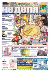 неделя 18+ Ковровская Городская информационноаналитическая газета неделя Ковровская Частные объявления БЕСПЛАТНО: 6-44-07, kn-bizness@mail.ru реклама реклама © КН. 2012 – автономное отопление – отличный район – удобные планировки – доступные цены – надежный застройщик ÎÎÎ «ÑÓ ÄÑÊ» – íàäåæíûé çàñòðîéùèê è ïàðòíåð Æèòü ëó÷øå – íå çíà÷èò äîðîãî По вопросам приобретения квартир обращайтесь по адресу: Ковров, ул. Строителей, д. 15, стр. 1; тел. 4-72-36, 8-910-090-03-48 Проектная декларация размещена на сайте СУ ДСК: www.sudsk.ru Св-во о допуске к работам №0005.042009-3305050900-С-107 от 6.03.2012 г. 17-этажный кирпично-панельный дом на ул. Строителей, д. 29 «Березовая роща» 68% продано Цены – от 27985 рублей за кв. м – элитный дом – уютная квартира – хорошая жизнь! поселок Мелехово, ул. Пионерская, д. 4 От 27000 рублей за кв. м реклама © КН. 2012 Планируемый срок ввода в эксплуатацию - III квартал 2013 г. страница 15 страница 11 № 11 (76) 15 марта 2013 г. Понедельник Ковров, ул. Пугачева, д. 32, офис 3 ÎÊÍÀ Тел. 3-94-77 8-915-790-20-31 реклама © КН. 2013 для тех, кто умеет ЭКономить официальный представитель www.keookna.ru Цены от крупной организации, без посредников ëåò ГАРАНТИЯ 5 Вторник страница 2 страница 2 Среда Пятница страница 4 Четверг страница 3 С Масленицей ласковой поздравляем вас, Пирогам повластвовать наступает час. Без блинов не сладятся проводы зимы, К песне, к шутке, к радости приглашаем мы! Фото Б. Никитина Воскресенье страница 5 Ковровский картинг. Вспомним, как все начиналось… Момент Не-истины. Кость в горле монополий Торжество справедливости. Сомнительное оправдание Балаган заказывали? Решение вопросов горлом Народ и власть. С пенсионерами обсудят реформы Управление городского хозяйства в борьбе за копейку Ты не прав, монополист! – сказала ФАС Суббота страница 5