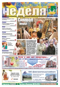 неделя 18+ Ковровская Городская информационноаналитическая газета Сто лет – не предел. Рецепты долголетия неделя Ковровская Частные объявления БЕСПЛАТНО: 6-44-07, kn-bizness@mail.ru реклама Вторник страница 2 страница 2 Среда Понедельник ОАО «Домостроительный комбинат» Трудоустройство для всех, кто хочет видеть свой завтрашний день благополучным и стабильным. Тел.: 9-05-38, 9-05-95, 3-91-65 E-mail: DSKOV@yandex.ru Социальные гарантии. Перспективы развития. Большой объем заказов. реклама № 39 (104) 27 сентября 2013 г. Четверг страница 5 Пятница страница 6 Суббота страница 15 первоначальный взнос – ÍÅÒ удобные планировки – ÄÀ дополнительные затраты – ÍÅÒ собственная котельная – ÄÀ скидки при 100% оплате – ÄÀ ипотека в любом банке – ÄÀ надежный застройщик – ÄÀ отличный район – ÄÀ ÎÎÎ «ÑÓ ÄÑÊ» – íàäåæíûé çàñòðîéùèê è ïàðòíåð Åñëè ó âàñ íåò êâàðòèðû... Äóìàéòå ñàìè, ðåøàéòå ñàìè, èìåòü èëè íå èìåòü! По вопросам приобретения квартир обращайтесь по адресу: Ковров, ул. Строителей, д. 15, стр. 1; тел. 4-72-36, 8-910-090-03-48 Проектная декларация размещена на сайте СУ ДСК: www.sudsk.ru Св-во о допуске к работам №0005.042009-3305050900-С-107 от 6.03.2012 г. 17-этажный кирпично-панельный дом на ул. Строителей, д. 29 «Березовая роща» 77% продано Плановая сдача дома – III квартал 2013 года большие кухни удобная планировка индивидуальное отопление поселок Мелехово, ул. Пионерская, д. 4 реклама © КН. 2013 Дом введен в эксплуатацию в 2011 г. От 27000 рублей за кв. м Достойная жизнь! Элитный дом Уютная квартира страница 26 Воскресенье страница 14 На этой неделе в Коврове пребывала икона святого благоверного князя Александра Невского. Образ и ковчег с частицей мощей святого находились в Христо-Рождественском соборе, и поклониться им смогли все желающие. Александра Невского просят о защите Родины от нападения врагов и об укреплении в вере. Из Коврова икона направилась в Муромскую епархию. веры Символ В. Кауров: выдержать зиму – дело чести Ковровчан будут приучать к чистоте рублем Грозит ли Малеевке нашествие мигрантов? Родительская плата за детский сад: 82 или 85? Орган – от барокко до модерна 500 ковровчан вышли на старт «Кросса нации»