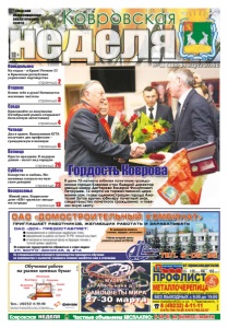 27-30 марта неделя 18+ Ковровская Городская информационноаналитическая газета неделя Ковровская Частные объявления БЕСПЛАТНО: 6-44-07, kn-bizness@mail.ru Понедельник ÎÀÎ «ÄÑÊ» ïðåäîñòàâëÿåò: ñâîåâðåìåííóþ è ñòàáèëüíóþ çàðàáîòíóþ ïëàòó; îôîðìëåíèå íà ðàáîòó ñîãëàñíî ÒÊ ÐÔ, ïîëíûé ñîö.ïàêåò; îò÷èñëåíèÿ â ïåíñèîííûé ôîíä íà áóäóùóþ ïåíñèþ ñ ïîëíîé ñóììû çàðàáîòêà. ÎÀÎ «Äîìîñòðîèòåëüíûé êîìáèíàò» ïðèãëàøàåò ðàáîòíèêîâ, æåëàþùèõ ðàáîòàòü è çàðàáàòûâàòü Òåë. 9-05-35 Ïî âîïðîñàì òðóäîóñòðîéñòâà îáðàùàòüñÿ â îòäåë êàäðîâ: óë. Âîëãî-Äîíñêàÿ, ä. 21à Ïî ñïåöèàëüíîñòÿì îñíîâíîãî ïðîèçâîäñòâà ïðîâîäèòñÿ îáó÷åíèå íà ïðåäïðèÿòèè ñ âûïëàòîé ó÷àùèìñÿ ïîìèìî çàðàáîòêà åùå è ñòèïåíäèè ðåêëàìà Ðàáî÷èå âå÷åðíåé ñìåíû ðàçâîçÿòñÿ äîìîé àâòîáóñîì Íà ïðåäïðèÿòèè èìåþòñÿ ñòîëîâàÿ, ìåäïóíêò, àâòîñòîÿíêà № 11 (128) 14 марта 2014 г. страница 3 Среда Вторник страница 2 реклама страница 13 Воскресенье страница 23 Суббота страница 26 Четверг страница 4 Пятница страница 6 ðåêëàìà от производителя МЕТАЛЛОЧЕРЕПИЦА ПРОФЛИСТ С-8, С-10, С-18, С-21, НС-45, Н-60, ПЛОСКИЙ ЛИСТ реклама ВСЕ ЦВЕТА ● ЛЮБОЙ РАЗМЕР ● ДОБОРНЫЕ ЭЛЕМЕНТЫ БЕЗ ВЫХОДНЫХ с 9.00 до 19.00 www.metallprofil33.ru ул. Т. Павловского, 1 8 (49232) 4-11-11 8-915-769-79-80 8-915-760-22-07 В день 75-летнего юбилея почетным гражданином города Коврова стал бывший директор завода имени Дегтярева Валерий Филиппович Петрушев. 12 марта на торжественной церемонии зам. главы администрации города Анатолий Зотов вручил юбиляру почетный знак, свидетельство почетного гражданина и повязал алую ленту. Гордость Коврова На отдых – в Крым! Регион-33 и Крымская республика укрепляют партнерство Веник тебе в руки! Начинается месячник чистоты Приезжайте за покупками. Октябрьский рынок открывает бесплатную автостоянку Два в одном. Выпускники КГТА получают две профессии – гражданскую и военную Просто праздник. В подарок дамам – полет над городом Коварство и любовь. Мошенница сыграла на мужском доверии Живой звук. Корреспондент «КН» «рулила» звездами эстрады