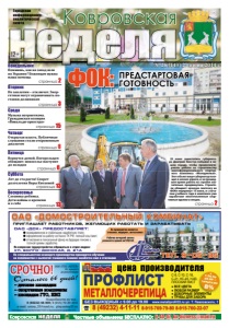неделя 12+ Ковровская Городская информационноаналитическая газета неделя Ковровская Частные объявления БЕСПЛАТНО: 6-44-07, kn-bizness@mail.ru Понедельник ÎÀÎ «ÄÑÊ» ïðåäîñòàâëÿåò:  ñâîåâðåìåííóþ è ñòàáèëüíóþ çàðàáîòíóþ ïëàòó;  îôîðìëåíèå íà ðàáîòó ñîãëàñíî ÒÊ ÐÔ, ïîëíûé ñîö.ïàêåò;  îò÷èñëåíèÿ â ïåíñèîííûé ôîíä íà áóäóùóþ ïåíñèþ ñ ïîëíîé ñóììû çàðàáîòêà. ÎÀÎ «Äîìîñòðîèòåëüíûé êîìáèíàò» ïðèãëàøàåò ðàáîòíèêîâ, æåëàþùèõ ðàáîòàòü è çàðàáàòûâàòü Òåë. 9-05-35 Ïî âîïðîñàì òðóäîóñòðîéñòâà îáðàùàòüñÿ â îòäåë êàäðîâ: óë. Âîëãî-Äîíñêàÿ, ä. 21à Ïî ñïåöèàëüíîñòÿì îñíîâíîãî ïðîèçâîäñòâà ïðîâîäèòñÿ îáó÷åíèå íà ïðåäïðèÿòèè ñ âûïëàòîé ó÷àùèìñÿ ïîìèìî çàðàáîòêà åùå è ñòèïåíäèè ðåêëàìà Ðàáî÷èå âå÷åðíåé ñìåíû ðàçâîçÿòñÿ äîìîé àâòîáóñîì Íà ïðåäïðèÿòèè èìåþòñÿ ñòîëîâàÿ, ìåäïóíêò, àâòîñòîÿíêà № 26 (143) 27 июня 2014 г. страница 3 Среда Вторник страница 2 Четверг страница 15 Пятница страница 6 цена производителя МЕТАЛЛОЧЕРЕПИЦА ПРОФЛИСТ С-8, С-10, С-18, С-21, НС-45, Н-60, ПЛОСКИЙ ЛИСТ с 1.06 по 30.06 – скидка до 8% реклама ● ВСЕ ЦВЕТА ● ЛЮБОЙ РАЗМЕР ● ДОБОРНЫЕ ЭЛЕМЕНТЫ ● ТРУБЫ ДЛЯ ЗАБОРА БЕЗ ВЫХОДНЫХ с 9.00 до 19.00 www.metallprofil33.ru ул. Т. Павловского, 1 8 (49232) 4-11-11 8-915-769-79-80 8-915-760-22-07 ðåêëàìà ÑÐÎ×ÍÎ! Ñåðòèôèêàòû íà ñîîòâåòñòâèå ÃÎÑÒ è Åâðîïåéñêîé íîðìå EN-1176 Îñòàëîñü 66 äíåé! – äåòñêèå ïëîùàäêè – ñïîðòèâíûå êîìïëåêñû – ïëîùàäêè ÃÒÎ, ÍÂÏ Ïîäðîáíîñòè ïî òåë.: 8 (49232) 44-900; 8 (915) 79-30-30-6 e-mail: antey_33@mail.ru; play.antey33.ru ООО «ТПК «АНТЕЙ» д о рОе та лпирзоаецкитиа ФОК: Суббота страница 6 25 июня заместитель губернатора Дмитрий Хвостов побывал в нашем городе, чтобы проинспектировать работы по строительству многофункционального спортивного комплекса «Молодежный». Этот объект вице-губернатор посещал в начале апреля, и за прошедшее время работа на стройке значительно продвинулась. Строители обещают: красную ленточку на ФОКе перережут 15 июля, и с началом учебного года в комплексе уже заработают многочисленные спортивные кружки и секции. страница 2 Воскресенье страница 13 страница 13 ПРЕДСТАРТОВАЯ ГОТОВНОСТЬ Помнишь, как на запад шли по Украине? Беженцам нужна наша помощь Не заплатим – отключат. Энергетики могут ограничивать поставки должникам Музыка патриотизма. Гражданская позиция «Вивальди-оркестра» Открытая власть. Публичные слушания стали откровенным диалогом Вернутся домой. Погорельцам обещают: новоселье наступит до холодов Лет до ста расти! Секрет долголетия Веры Китаевой Слезинка ребенка. Дети войны о времени и о себе