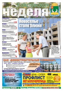 неделя 12+ Ковровская Городская информационноаналитическая газета неделя Ковровская Частные объявления БЕСПЛАТНО: 6-44-07, kn-bizness@mail.ru Понедельник ÎÀÎ «ÄÑÊ» ïðåäîñòàâëÿåò: ñâîåâðåìåííóþ è ñòàáèëüíóþ çàðàáîòíóþ ïëàòó; îôîðìëåíèå íà ðàáîòó ñîãëàñíî ÒÊ ÐÔ, ïîëíûé ñîö.ïàêåò; îò÷èñëåíèÿ â ïåíñèîííûé ôîíä íà áóäóùóþ ïåíñèþ ñ ïîëíîé ñóììû çàðàáîòêà. ÎÀÎ «Äîìîñòðîèòåëüíûé êîìáèíàò» ïðèãëàøàåò ðàáîòíèêîâ, æåëàþùèõ ðàáîòàòü è çàðàáàòûâàòü Òåë. 9-05-35 Ïî âîïðîñàì òðóäîóñòðîéñòâà îáðàùàòüñÿ â îòäåë êàäðîâ: óë. Âîëãî-Äîíñêàÿ, ä. 21à Ïî ñïåöèàëüíîñòÿì îñíîâíîãî ïðîèçâîäñòâà ïðîâîäèòñÿ îáó÷åíèå íà ïðåäïðèÿòèè ñ âûïëàòîé ó÷àùèìñÿ ïîìèìî çàðàáîòêà åùå è ñòèïåíäèè ðåêëàìà Ðàáî÷èå âå÷åðíåé ñìåíû ðàçâîçÿòñÿ äîìîé àâòîáóñîì Íà ïðåäïðèÿòèè èìåþòñÿ ñòîëîâàÿ, ìåäïóíêò, àâòîñòîÿíêà № 29 (146) 18 июля 2014 г. страница 2 Среда Вторник страницы 2, 23 Четверг страница 4 Пятница страница 6 ЦЕНА – СУПЕР! 408 рублей МЕТАЛЛОЧЕРЕПИЦА ПРОФЛИСТ С-8, С-10, С-18, С-21, НС-45, Н-60, ПЛОСКИЙ ЛИСТ акция на лист RAL крашеный 2 м с 10.07 по 15.08 реклама ● ВСЕ ЦВЕТА ● ЛЮБОЙ РАЗМЕР ● ДОБОРНЫЕ ЭЛЕМЕНТЫ ● ТРУБЫ ДЛЯ ЗАБОРА БЕЗ ВЫХОДНЫХ с 9.00 до 19.00 www.metallprofil33.ru ул. Т. Павловского, 1 8 (49232) 4-11-11 8-915-769-79-80 8-915-760-22-07 ðåêëàìà ÑÐÎ×ÍÎ! Ñåðòèôèêàòû íà ñîîòâåòñòâèå ÃÎÑÒ è Åâðîïåéñêîé íîðìå EN-1176 Îñòàëîñü 45 äíåé! – äåòñêèå ïëîùàäêè – ñïîðòèâíûå êîìïëåêñû – ïëîùàäêè ÃÒÎ, ÍÂÏ Ïîäðîáíîñòè ïî òåë.: 8 (49232) 44-900; 8 (915) 79-30-30-6 e-mail: antey_33@mail.ru; play.antey33.ru ООО «ТПК «АНТЕЙ» д о рОе та лпирзоаецкитиа Суббота страница 14 Воскресенье страница 23 страница 15 страница 3 Новоселье стало ближе В четрерг 16 молодых ковровских семей стали счастливыми обладателями свидетельств на получение государственной субсидии на покупку жилья Не стареют душой. Фронтовая купель полковника Недомеркова Восстановим – будем жить. Область выделила средства на пострадавший от пожара дом Капремонт из первых уст. Региональный оператор встретился с ковровчанами Хорошей школе ЕГЭ не страшен. Ирина Иголкина подводит итоги учебного года История в бутылке. В городском музее – необычная выставка Лес рубят – лисы бегут. Как уберечься от бешенства Живописцы, окуните ваши кисти! Ковровские художники готовятся к юбилею