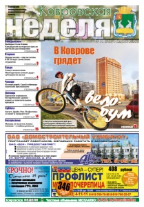 неделя 12+ Ковровская Городская информационноаналитическая газета неделя Ковровская Частные объявления БЕСПЛАТНО: 6-44-07, kn-bizness@mail.ru Понедельник № 32 (149) 8 августа 2014 г. страница 3 Среда Вторник страница 2 Четверг страница 4 Пятница страница 6 ðåêëàìà ÑÐÎ×ÍÎ! Ñåðòèôèêàòû íà ñîîòâåòñòâèå ÃÎÑÒ è Åâðîïåéñêîé íîðìå EN-1176 Îñòàëîñü 24 äíÿ! – äåòñêèå ïëîùàäêè – ñïîðòèâíûå êîìïëåêñû – ïëîùàäêè ÃÒÎ, ÍÂÏ Ïîäðîáíîñòè ïî òåë.: 8 (49232) 44-900; 8 (915) 79-30-30-6 e-mail: antey_33@mail.ru; play.antey33.ru ООО «ТПК «АНТЕЙ» д о рОе та лпирзоаецкитиа Суббота страница 12 Воскресенье страница 14 страница 15 ÎÀÎ «ÄÑÊ» ïðåäîñòàâëÿåò: ñâîåâðåìåííóþ è ñòàáèëüíóþ çàðàáîòíóþ ïëàòó; îôîðìëåíèå íà ðàáîòó ñîãëàñíî ÒÊ ÐÔ, ïîëíûé ñîö.ïàêåò; îò÷èñëåíèÿ â ïåíñèîííûé ôîíä íà áóäóùóþ ïåíñèþ ñ ïîëíîé ñóììû çàðàáîòêà. ÎÀÎ «Äîìîñòðîèòåëüíûé êîìáèíàò» ïðèãëàøàåò ðàáîòíèêîâ, æåëàþùèõ ðàáîòàòü è çàðàáàòûâàòü Òåë. 9-05-35 Ïî âîïðîñàì òðóäîóñòðîéñòâà îáðàùàòüñÿ â îòäåë êàäðîâ: óë. Âîëãî-Äîíñêàÿ, ä. 21à Ïî ñïåöèàëüíîñòÿì îñíîâíîãî ïðîèçâîäñòâà ïðîâîäèòñÿ îáó÷åíèå íà ïðåäïðèÿòèè ñ âûïëàòîé ó÷àùèìñÿ ïîìèìî çàðàáîòêà åùå è ñòèïåíäèè ðåêëàìà Ðàáî÷èå âå÷åðíåé ñìåíû ðàçâîçÿòñÿ äîìîé àâòîáóñîì Íà ïðåäïðèÿòèè èìåþòñÿ ñòîëîâàÿ, ìåäïóíêò, àâòîñòîÿíêà реклама ЦЕНА – СУПЕР! 408 рублей МЕТАЛЛОЧЕРЕПИЦА ПРОФЛИСТ С-8, С-10, С-18, С-21, НС-45, Н-60, ПЛОСКИЙ ЛИСТ акция на С-8 RAL-крашеный 2 м с 10.07 по 15.08 ● ВСЕ ЦВЕТА ● ЛЮБОЙ РАЗМЕР ● ДОБОРНЫЕ ЭЛЕМЕНТЫ ● ТРУБЫ ДЛЯ ЗАБОРА БЕЗ ВЫХОДНЫХ с 9.00 до 19.00 www.metallprofil33.ru ул. Т. Павловского, 1 8 (49232) 4-11-11 8-915-769-79-80 8-915-760-22-07 С-8, 2 м, сорт Б крашеный RAL 346 р. страница 16 В Коврове грядет âåëîáóì Выборы стали ближе. Кандидатам на мэрское кресло вручили удостоверения Первая волна – еще не волна. В КГТА идет зачисление студентов Станут новоселами. Многодетным семьям дадут субсидии на жилье На передовой. Судьба офицера Анатолия Цвеловского Прогулки в прошлое. Исторические здания – память о замечательных предках Август. Драйв. Рок. На фестивале поют и танцуют все! Музыка ее полотен. Елена Соснова – о тайнах ремесла 9 августа изюминкой Дня физкультурника в Коврове станет большой велосипедный праздник