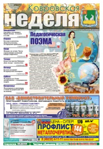 неделя 12+ Ковровская Городская информационноаналитическая газета неделя Ковровская Частные объявления БЕСПЛАТНО: 6-44-07, kn-bizness@mail.ru Понедельник № 40 (157) 3 октября 2014 г. страница 3 Среда Вторник страница 3 Четверг страница 6 ОАО «ДСК» предоставляет:  своевременную и стабильную заработную плату;  оформление на работу согласно ТК РФ, полный соц.пакет;  отчисления в пенсионный фонд на будущую пенсию с полной суммы заработка. ОАО «Домостроительный комбинат» приглашает работников, желающих работать и зарабатывать Тел. 9-05-95 По вопросам трудоустройства обращаться в отдел кадров: ул. Волго-Донская, д. 21а По специальностям основного производства проводится обучение на предприятии с выплатой учащимся помимо заработка еще и стипендии реклама Рабочие вечерней смены развозятся домой автобусом На предприятии имеются столовая, медпункт, автостоянка Пятница страница 15 Суббота страница 21 реклама ЦЕНА – СУПЕР! 170 руб./м2 МЕТАЛЛОЧЕРЕПИЦА ПРОФЛИСТ С-8, С-10, С-18, С-21, НС-45, Н-60, ПЛОСКИЙ ЛИСТ акция на С-8 RAL-крашеный 2 м по 30.09 ● ВСЕ ЦВЕТА ● ЛЮБОЙ РАЗМЕР ● ДОБОРНЫЕ ЭЛЕМЕНТЫ ● ТРУБЫ ДЛЯ ЗАБОРА БЕЗ ВЫХОДНЫХ с 9.00 до 19.00 www.metallprofil33.ru ул. Т. Павловского, 1 8 (49232) 4-11-11 8-915-769-79-80 8-915-760-22-07 р./м2 С-8, 2 м, сорт Б крашеный RAL 144 страница 13 •СБОРЩИК МАТРАСОВ •НАЛАДЧИК СТАНКОВ •УКЛАДЧИК-УПАКОВЩИК •ПОДСОБНЫЙ РАБОЧИЙ •ШВЕЯ обучение на производстве, работа в сменах 8-919-009-71-71 8(49232) 99-222 реклама страница 23 Воскресенье страница 22 Уважаемые учителя, преподаватели, ветераны педагогического труда! От всей души поздравляю вас с профессиональным праздником – Всемирным днем учителя! Владимирская земля богата замечательными людьми, посвятившими всю жизнь школе и передавшими свою преданность педагогической профессии детям, внукам, правнукам. Мы гордимся педагогическими династиями, посвятившими себя нужному и благородному труду. Ваш труд неоценим, как неоценимо тепло ваших сердец, ваше творчество, вдохновение и душевное богатство. Обращаясь ко всем педагогам области, хочу сказать слова глубокой благодарности и пожелания дальнейших успехов всем, кто вносит свой вклад в развитие российского образования: учителям и воспитателям, преподавателям и научным работникам, руководителям педагогических коллективов и работникам системы управления образования – всем тем, чей скромный труд, ежедневная самоотдача и творческая деятельность помогают добиться значительных результатов в нелегком деле модернизации российского образования, сделать его более доступным и качественным, сохраняя при этом его традиционную самобытность и фундаментальные основы. Удачи и новых свершений вам в сложной, но важной и интересной работе! С глубоким уважением, губернатор С.Ю. Орлова Педагогическая ПОЭМА Смотрите, кто пришел. Ирина Зотова – о Совете и о себе Без пауз и раскачек. Депутаты взялись за городские проблемы Меньше, но лучше. Число управляющих компаний вскоре сократится Искусство против Майдана: День театра – ежемесячно Болеем за наших! Не пропустите мотокросс Из первых уст. Глава департамента – о медицинских кадрах Мальчишкам и девчонкам, а также их родителям: ЕГЭ по‑новому