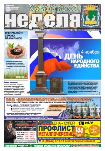 неделя 12+ Ковровская Городская информационноаналитическая газета Администрация города призывает владельцев земельных участков узаконить свою собственность. свежие новости, актуальные темы, проблемы здравоохранения и ЖКХ, очерки о земляках, официальная информация, спорт, здоровье, происшествия, афиша, объявления, сканворд ОФОРМЛЯЙТЕ ЗЕМЛЮ ПРАВИЛЬНО! неделя Ковровская Частные объявления БЕСПЛАТНО: 6-44-07, kn-bizness@mail.ru № 44 (161) 31 октября 2014 г. ОАО «ДСК» предоставляет: своевременную и стабильную заработную плату; оформление на работу согласно ТК РФ, полный соц.пакет; отчисления в пенсионный фонд на будущую пенсию с полной суммы заработка. ОАО «Домостроительный комбинат» приглашает работников, желающих работать и зарабатывать Тел. 9-05-95 По вопросам трудоустройства обращаться в отдел кадров: ул. Волго-Донская, д. 21а По специальностям основного производства проводится обучение на предприятии с выплатой учащимся помимо заработка еще и стипендии реклама Рабочие вечерней смены развозятся домой автобусом На предприятии имеются столовая, медпункт, автостоянка реклама ЦЕНА – СУПЕР! 170 руб./м2 МЕТАЛЛОЧЕРЕПИЦА ПРОФЛИСТ С-8, С-10, С-18, С-21, НС-45, Н-60, ПЛОСКИЙ ЛИСТ акция на С-8 RAL-крашеный 2 м по 30.09 ● ВСЕ ЦВЕТА ● ЛЮБОЙ РАЗМЕР ● ДОБОРНЫЕ ЭЛЕМЕНТЫ ● ТРУБЫ ДЛЯ ЗАБОРА БЕЗ ВЫХОДНЫХ с 9.00 до 19.00 www.metallprofil33.ru ул. Т. Павловского, 1 8 (49232) 4-11-11 8-915-769-79-80 8-915-760-22-07 р./м2 С-8, 2 м, сорт Б крашеный RAL 144 страница 2 страница 23 реклама Также в номере: Для города воинской славы Коврова нынешний праздник особенно значим. День народного единства, он же – День воинской славы России, демонстрирует истинный смысл патриотизма, дает нам, гражданам великого государства, ощущение причастности к нашей древней истории и культуре, связывает нации и разные поколения страны в единое целое.