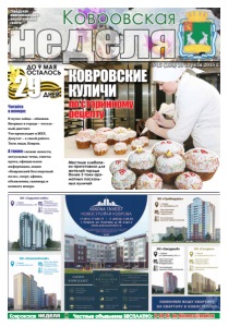 неделя Ковровская Частные объявления БЕСПЛАТНО: 6-44-07, kn-bizness@mail.ru страница 3 ДО 9 МАЯ ОСТАЛОСЬ 29 ДНЕЙ 12+неделя Ковровская Городская информационноаналитическая газета №15 (184) 10 апреля 2015 г. КОВРОВСКИЕ КУЛИЧИ по старинному рецепту Местные хлебопеки приготовили для жителей города более 3 тонн ароматных пасхальных куличей В музее зайца – обновки. Впервые в городе – тотальный диктант. Что происходит в ЖКХ. Депутат – о своей работе. Твои люди, Ковров. А также: свежие новости, актуальные темы, советы врача, официальная информация, акция «Ковровский Бессмертный полк», спорт, афиша, объявления, сканворд и немного юмора. Читайте в номере: