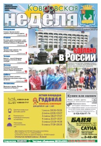неделя Городская информационноаналитическая газета 12+ Ковровская неделя Ковровская Частные объявления БЕСПЛАТНО: 6-44-07, kn-bizness@mail.ru Понедельник Воскресенье страница 23 Суббота страница 15 Пятница страница 6 страница 24 Четверг страница 4 №23 (192) 5 июня 2015 г. реклама страница 4 Среда Вторник страница 2 БАНЯ САУНА Тел. 2-42-45 на Набережной, 13/1 реклама круглосуточно 100 руб. (соц. билет – 70 руб.) 1000 руб. ДНЕМ 1150 руб. ПОСЛЕ 21.00 реклама СДЕЛАНО в России Замена импортных товаров отечественными – главная тема III Владимирского экономического форума страницы 3, 14 Стихия. Ураган валил деревья и рекламные щиты Больше денег из центра – в регионы! Депутат Госдумы Игорь Игошин побывал в Коврове Тревоги про дороги: что починят этим летом Вместе – сила! В Коврове впервые отметили День соседей Иконописец нового времени: как увековечить память Юрия Кузнецова Письма пишут разные... Наркотик пытались переслать по почте Времена и нравы. Москве Содомом не бывать!