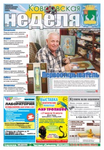 неделя Городская информационноаналитическая газета 12+ Ковровская неделя Ковровская Частные объявления БЕСПЛАТНО: 6-44-07, kn-bizness@mail.ru Понедельник Четверг страница 3 страница 2 Среда Вторник страница 2 №30 (199) 24 июля 2015 г. НОВЫЕ МЕДИЦИНСКИЕ ТЕХНОЛОГИИ ФЕДЕРАЛЬНАЯ СЕТЬ нам 15 лет автоматизированная ЛАБОРАТОРИЯ Прием специалистов: • АЛЛЕРГОЛОГ-ИММУНОЛОГ, • терапевт, • акушер-гинеколог, • гастроэнтеролог, • ревматолог, • уролог • эндокринолог УЗИ, ЭКГ взрослым и детям *ПЕРЕЧЕНЬ И СТОИМОСТЬ АНАЛИЗОВ УТОЧНЯЙТЕ У АДМИНИСТРАТОРА ПРИ РЕГИСТРАЦИИ **ОРГАНИЗАТОР: OOO "КОМПАНИЯ "НОВЫЕ МЕДИЦИНСКИЕ ТЕХНОЛОГИИ". ИНФОРМАЦИЮ ОБ ОРГАНИЗАТОРЕ, МЕСТЕ, СРОКАХ И ПОРЯДКЕ УЧАСТИЯ В АКЦИИ УТОЧНЯЙТЕ ПО ТЕЛ. 6-43-48. OOO "КОМПАНИЯ "НОВЫЕ МЕДИЦИНСКИЕ ТЕХНОЛОГИИ", ОГРН 1133327002698 ИНН 332701001. ЛИЦ. ЛО-33-01-001823 ОТ 3.04.2015 Г. ВЫДАНА ДЕПАРТАМЕНТОМ ЗДРАВООХРАНЕНИЯ ВЛАДИМИРСКОЙ ОБЛАСТИ. г. Ковров, пр-т Ленина, д. 35 тел. 8(49232) 6-43-48, 8-930-830-09-57, 8-900-477-55-11 nmt33.ru ВСЕ ВИДЫ АНАЛИЗОВ, ЗАБОР КРОВИ С 0 ЛЕТ АНАЛИЗЫ В ДЕНЬ ОБРАЩЕНИЯ* РЕКЛАМА ÈÌÅÞÒÑß ÏÐÎÒÈÂÎÏÎÊÀÇÀÍÈß. ÍÅÎÁÕÎÄÈÌÀ ÊÎÍÑÓËÜÒÀÖÈß ÑÏÅÖÈÀËÈÑÒÀ Прием в Коврове (взрослые и дети с 0 лет) аллергологов-иммунологов из г. Владимира: врач высшей категории Русаковская М.Г. кандидат медицинских наук Рябинина З.В. реклама ● ШПОН FINE-LINE ● ПИЛОМАТЕРИАЛЫ ● НАТУРАЛЬНЫЙ ШПОН ● МЕБЕЛЬНЫЙ ЩИТ ● КЛЕЙ, ГРУНТ, ЛАК Северный проезд, д. 1 (Лесоторговая база) 2-46-31 8-919-022-02-99 8-919-022-02-88 8-919-022-02-77 8-919-022-02-33 КОМПАНИЯ ВУДСТОК реклама страница 15 ВЫСТАВКА ЭКЗОТИЧЕСКИХ ЖИВОТНЫХ 0+ ОБЕЗЬЯНЫ, КРОКОДИЛЫ, ПОПУГАИ, ЯЩЕРИЦЫ, ИГУАНЫ, УДАВЫ, ПИТОНЫ, АНАКОНДЫ, ПАУКИ, ПОЛОЗЫ, ЧЕРЕПАХИ, ЖАБА АГА, ПАУКИ-ПТИЦЕЕДЫ И МН. ДР. Увлекательные экскурсии и фотографирование с 27 июля по 16 августа ДК им. Ногина время работы: с 10.00 до 20.00 МИР ТРОПИКОВ ПРЕДЪЯВИТЕЛЮ КУПОНА СКИДКА – 20 РУБ. БЕЗ ВОЗРАСТНЫХ ОГРАНИЧЕНИЙ # Цена билета: – 100 руб. детский – 130 руб. взрослый реклама Воскресенье страница 14 Суббота страница 6 Пятница страница 4 Первооткрыватель Далеко не каждому художнику удается стать автором нового направления в искусстве. И хотя «Икону 21 века. Кузнецовское письмо» назвали по имени Юрия Кузнецова, на самом деле первооткрывателей-ковровчан было двое. Один из них, Валерий Тихомиров, в год 75-летнего юбилея демонстрирует свои работы в городском музее. Неделя комитетов: депутаты разбирались с котельными Шок! 3-летняя девочка из Александрова погибла на египетском курорте Я к тебе со всею душой… Коммерсанты проигнорировали встречу в мэрии Вопрос жизни и смерти: когда в Коврове будет кладбище и крематорий? Город и горожане. Добрый сосед лучше дальней родни Регата без матрасов: на суше, но весело Парк княжеского периода. У нас появится еще один объект культурного наследия страница 14