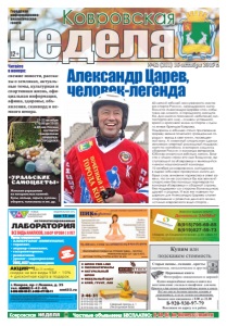 неделя Городская информационноаналитическая газета Ковровская неделя Ковровская Частные объявления БЕСПЛАТНО: 6-44-07, kn-bizness@mail.ru №42 (211) 16 октября 2015 г. НОВЫЕ МЕДИЦИНСКИЕ ТЕХНОЛОГИИ ФЕДЕРАЛЬНАЯ СЕТЬ нам 15 лет автоматизированная ЛАБОРАТОРИЯ Прием специалистов: • АЛЛЕРГОЛОГ-ИММУНОЛОГ, • терапевт, • акушер-гинеколог, • гастроэнтеролог, • ревматолог, • уролог • эндокринолог УЗИ, ЭКГ взрослым и детям *ПЕРЕЧЕНЬ И СТОИМОСТЬ АНАЛИЗОВ УТОЧНЯЙТЕ У АДМИНИСТРАТОРА ПРИ РЕГИСТРАЦИИ **ОРГАНИЗАТОР: OOO "КОМПАНИЯ "НОВЫЕ МЕДИЦИНСКИЕ ТЕХНОЛОГИИ". ИНФОРМАЦИЮ ОБ ОРГАНИЗАТОРЕ, МЕСТЕ, СРОКАХ И ПОРЯДКЕ УЧАСТИЯ В АКЦИИ УТОЧНЯЙТЕ ПО ТЕЛ. 6-43-48. OOO "КОМПАНИЯ "НОВЫЕ МЕДИЦИНСКИЕ ТЕХНОЛОГИИ", ОГРН 1133327002698 ИНН 332701001. ЛИЦ. ЛО-33-01-001823 ОТ 3.04.2015 Г. ВЫДАНА ДЕПАРТАМЕНТОМ ЗДРАВООХРАНЕНИЯ ВЛАДИМИРСКОЙ ОБЛАСТИ. г. Ковров, пр-т Ленина, д. 35 тел. 8(49232) 6-43-48, 8-930-830-09-57, 8-900-477-55-11 nmt33.ru ВСЕ ВИДЫ АНАЛИЗОВ, ЗАБОР КРОВИ С 0 ЛЕТ АНАЛИЗЫ В ДЕНЬ ОБРАЩЕНИЯ* РЕКЛАМА ÈÌÅÞÒÑß ÏÐÎÒÈÂÎÏÎÊÀÇÀÍÈß. ÍÅÎÁÕÎÄÈÌÀ ÊÎÍÑÓËÜÒÀÖÈß ÑÏÅÖÈÀËÈÑÒÀ АКЦИЯ**! До 25 октября скидка на все виды УЗИ – 10% + дисконтная карта в подарок ● ШПОН FINE-LINE ● ПИЛОМАТЕРИАЛЫ ● НАТУРАЛЬНЫЙ ШПОН ● МЕБЕЛЬНЫЙ ЩИТ ● КЛЕЙ, ГРУНТ, ЛАК Северный проезд, д. 1 (Лесоторговая база) 2-46-31 8-919-022-02-99 8-919-022-02-88 8-919-022-02-77 8-919-022-02-33 КОМПАНИЯ ВУДСТОК реклама эквивалент касса взаимопомощи реклама 12+ По понедельникам пенсионерам скидка на стрижку (цена – 120 руб.) Набираются группы: «Мама и малыш» (от 1 до 5 лет); детские группы; группа «Кому за 60» реклама свежие новости, рассказы о земляках, актуальные темы, культурная и спортивная жизнь, официальная информация, афиша, здоровье, объявления, сканворд и немного юмора. Читайте в номере: 60-летний юбилей заслуженного мастера спорта России, легендарного мотоболиста Александра Царёва стал событием не личного, а городского масштаба. Для многих поколений любителей мотоспорта его имя – символ успешной, яркой и красивой жизни в спорте и один из живых брендов Коврова. Подарком к юбилею стало присвоение Цареву звания почетного гражданина города и выход в свет книги, посвященной ему. А именитый спортсмен сделал землякам ответный роскошный подарок: матч по мотоболу, в котором сошлись сборная России и команда ветеранов. Юбиляр отметился забитым мячом. Вместе с отцом играл его сын Владимир, выступающий за «Ковровец» и являющийся членом национальной команды. 10 октября на ковровском мотодроме в адрес юбиляра прозвучало много добрых слов, виновник торжества в ответ заявил, что он не состоялся бы как великий спортсмен без помощи партнеров по команде «Ковровец» и сборной страны, без поддержки со стороны болельщиков, друзей и родных. И все же главным подарком для Александра Царева станет сохранение и развитие дела его жизни, истинно ковровского вида спорта... Александр Царев, человек-легенда «УРАЛЬСКИЕ САМОЦВЕТЫ» Женские украшения из натуральных камней: бусы, кольца, серьги, кулоны, обереги, талисманы и мн. др. реклама 21-22 октября с 10.00 до 19.00 в ДК им. Ногина состоится грандиозная ЯРМАРКАРАСПРОДАЖА