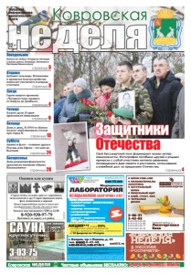 НОВЫЕ МЕДИЦИНСКИЕ ТЕХНОЛОГИИ ФЕДЕРАЛЬНАЯ СЕТЬ нам 15 лет Медицинская ЛАБОРАТОРИЯ Прием специалистов: • АЛЛЕРГОЛОГ-ИММУНОЛОГ, • терапевт, • акушер-гинеколог, • гастроэнтеролог, • ревматолог, • уролог • эндокринолог УЗИ, ЭКГ взрослым и детям *ПЕРЕЧЕНЬ И СТОИМОСТЬ АНАЛИЗОВ УТОЧНЯЙТЕ У АДМИНИСТРАТОРА ПРИ РЕГИСТРАЦИИ **ОРГАНИЗАТОР: OOO "КОМПАНИЯ "НОВЫЕ МЕДИЦИНСКИЕ ТЕХНОЛОГИИ". ИНФОРМАЦИЮ ОБ ОРГАНИЗАТОРЕ, МЕСТЕ, СРОКАХ И ПОРЯДКЕ УЧАСТИЯ В АКЦИИ УТОЧНЯЙТЕ ПО ТЕЛ. 6-43-48. OOO "КОМПАНИЯ "НОВЫЕ МЕДИЦИНСКИЕ ТЕХНОЛОГИИ", ОГРН 1133327002698 ИНН 332701001. ЛИЦ. ЛО-33-01-001823 ОТ 3.04.2015 Г. ВЫДАНА ДЕПАРТАМЕНТОМ ЗДРАВООХРАНЕНИЯ ВЛАДИМИРСКОЙ ОБЛАСТИ. г. Ковров, пр-т Ленина, д. 35 тел. 8(49232) 6-43-48, 8-930-830-09-57, 8-900-477-55-11 nmt33.ru ВСЕ ВИДЫ АНАЛИЗОВ, ЗАБОР КРОВИ С 0 ЛЕТ АНАЛИЗЫ В ДЕНЬ ОБРАЩЕНИЯ* РЕКЛАМА ÈÌÅÞÒÑß ÏÐÎÒÈÂÎÏÎÊÀÇÀÍÈß. ÍÅÎÁÕÎÄÈÌÀ ÊÎÍÑÓËÜÒÀÖÈß ÑÏÅÖÈÀËÈÑÒÀ АКЦИЯ**! скидка 20% на первичный прием специалистов: акушера-гинеколога, терапевта, эндокринолога с 10 февраля по 10 марта неделя Городская информационноаналитическая газета Ковровская неделя Ковровская Частные объявления БЕСПЛАТНО: 6-44-07, kn-bizness@mail.ru ● ШПОН FINE-LINE ● ПИЛОМАТЕРИАЛЫ (ЭКЗОТИКА) ● НАТУРАЛЬНЫЙ ШПОН ● МЕБЕЛЬНЫЙ ЩИТ ● КЛЕЙ, ГРУНТ, ЛАК ● ТЕРРАСНАЯ ДОСКА Северный проезд, д. 1 Лесоторговая база 2-46-31 2-42-02 8-919-022-02-99 8-919-022-02-88 8-919-022-02-77 8-919-022-02-33 КОМПАНИЯ ВУДСТОК реклама Понедельник Четверг страница 4 Воскресенье страница 24 Суббота страница 13 Пятница страница 6 страница 28 страница 3 Среда Вторник страница 3 12+ реклама страница 4 №7 (228) 19 февраля 2016 г. реклама в киосках «Роспечати» «КОВРОВСКАЯ НЕДЕЛЯ» реклама не менее 2 часов – 1750 р. круглосуточно САУНА 3-03-75 до 6 человек Сосновая, 19 Свой Бессмертный полк формируют воины-интернационалисты. Фотографии погибших друзей и родных принесли с собой участники митинга-реквиема, посвященного Дню памяти о россиянах, исполнявших служебный долг за пределами Отечества. Никто не забыт. Открыта мемориальная доска Леониду Леонову и Евгению Ковальчуку Защитники Отечества Добавят землицы. Изменения в правилах благоустройства позволят увеличить площадь участков Герои нашего времени. «Человек года» прошел от Кабула до Донбасса Благое дело. В храм пригласили инвалидов День в день. В 1944-м «Комсомолка» опубликовала статью про город Н. Армия и флот – главные друзья России, или Афган – это вам не Вьетнам День рождения факультета: креатив по мотивам «Ивана Васильевича»