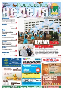 неделя Ковровская Понедельник Четверг страница 4 Пятница страница 4 страница 28 страница 3 Среда Вторник страница 2 12+ №22 (243) 3 июня 2016 г. Городская информационноаналитическая газета реклама в киосках «Роспечати» «КОВРОВСКАЯ НЕДЕЛЯ» Воскресенье страница 23 Суббота страница 6 НОВЫЕ МЕДИЦИНСКИЕ ТЕХНОЛОГИИ ФЕДЕРАЛЬНАЯ СЕТЬ нам 15 лет медицинская ЛАБОРАТОРИЯ Прием специалистов: • АЛЛЕРГОЛОГ-ИММУНОЛОГ • гастроэнтеролог, • ревматолог, УЗИ, ЭКГ взрослым и детям *ПЕРЕЧЕНЬ И СТОИМОСТЬ АНАЛИЗОВ УТОЧНЯЙТЕ У АДМИНИСТРАТОРА ПРИ РЕГИСТРАЦИИ **ОРГАНИЗАТОР: OOO "КОМПАНИЯ "НОВЫЕ МЕДИЦИНСКИЕ ТЕХНОЛОГИИ". ИНФОРМАЦИЮ ОБ ОРГАНИЗАТОРЕ, МЕСТЕ, СРОКАХ И ПОРЯДКЕ УЧАСТИЯ В АКЦИИ УТОЧНЯЙТЕ ПО ТЕЛ. 6-43-48. OOO "КОМПАНИЯ "НОВЫЕ МЕДИЦИНСКИЕ ТЕХНОЛОГИИ", ОГРН 1133327002698 ИНН 332701001. ЛИЦ. ЛО-33-01-001823 ОТ 3.04.2015 Г. ВЫДАНА ДЕПАРТАМЕНТОМ ЗДРАВООХРАНЕНИЯ ВЛАДИМИРСКОЙ ОБЛАСТИ. г. Ковров, пр-т Ленина, д. 35 тел. 8(49232) 6-43-48, 8-930-830-09-57, 8-900-477-55-11 nmt33.ru ВСЕ ВИДЫ АНАЛИЗОВ, ЗАБОР КРОВИ С 0 ЛЕТ АНАЛИЗЫ В ДЕНЬ ОБРАЩЕНИЯ* РЕКЛАМА ÈÌÅÞÒÑß ÏÐÎÒÈÂÎÏÎÊÀÇÀÍÈß. ÍÅÎÁÕÎÄÈÌÀ ÊÎÍÑÓËÜÒÀÖÈß ÑÏÅÖÈÀËÈÑÒÀ с 1 июня по 1 июля – АКЦИЯ** скидка 20% на первичный прием врача терапевта, гинеколога, уролога, эндокринолога + дисконтная карта в подарок неделя Ковровская Частные объявления БЕСПЛАТНО: 6-44-07, kn-bizness@mail.ru ● ШПОН FINE-LINE ● ПИЛОМАТЕРИАЛЫ (ЭКЗОТИКА) ● НАТУРАЛЬНЫЙ ШПОН ● МЕБЕЛЬНЫЙ ЩИТ ● КЛЕЙ, ГРУНТ, ЛАК ● ТЕРРАСНАЯ ДОСКА Северный проезд, д. 1 Лесоторговая база 2-46-31 2-42-02 8-919-022-02-99 8-919-022-02-88 8-919-022-02-77 8-919-022-02-33 КОМПАНИЯ ВУДСТОК реклама реклама страницы 3, 14 Куплю дорого реклама 8-916-594-00-50 АКЦИИ ОАО «ЗиД» Тел. 2-42-45 БАНЯ ЦЕНА С 9.00 ДО 21.00 - 1100 РУБ. (6 ЧЕЛ.) 2 ЧАСА; С 21.00 - 1250 РУБ. (6 ЧЕЛ.) 2 ЧАСА. работает круглосуточно ВТОРНИК – санитарный день САУНА реклама zz МУЖСКИЕ ДНИ: среда, пятница, воскресенье zz ЖЕНСКИЕ ДНИ: понедельник, четверг, суббота Цена билета – 135 руб. (социальный билет – 90 руб.) на Набережной, 13/1 Этот слоган, украшавший областной Белый дом в дни очередного экономического форума, стал пророческим. Форум был посвящен малому и среднему бизнесу и оказался настолько удачным, что председатель попечительского совета «Опора России» Сергей Борисов предложил закрепить тему поддержки малого и среднего предпринимательства в России – «навсегда за Владимиром». Участники пленарного заседания полностью одобрили это предложение. ВРЕМЯ быть лидерами От первого лица. Глава города – о бюджете, дорожной безопасности и обращениях граждан А Баба-Яга – против! Подводные камни концессии МУПа День защиты детей: как его отметили виновники торжества Семейный кошелек. Изменились сроки оплаты электроэнергии Проверка на дорогах. Общественники следят за качеством ремонта Солдатские вдовы. Большое сердце бабушки Маруси Танцуют все! «Синтез» от малышей до сеньоров