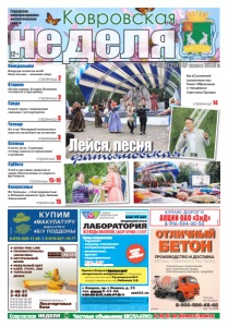 1 №30 Ковровская неделя 29 июля 2016 г. неделя Ковровская Понедельник Четверг страница 3 Пятница страница 3 страница 15 страница 2 Среда Вторник страница 2 12+ №30 (251) 29 июля 2016 г. Городская информационноаналитическая газета Воскресенье страницы 15-16 Суббота страница 13 НОВЫЕ МЕДИЦИНСКИЕ ТЕХНОЛОГИИ ФЕДЕРАЛЬНАЯ СЕТЬ нам 15 лет медицинская ЛАБОРАТОРИЯ Прием специалистов: • терапевт • акушер-гинеколог • гастроэнтеролог, • ревматолог, • уролог • эндокринолог УЗИ, ЭКГ взрослым и детям *ПЕРЕЧЕНЬ И СТОИМОСТЬ АНАЛИЗОВ УТОЧНЯЙТЕ У АДМИНИСТРАТОРА ПРИ РЕГИСТРАЦИИ **ОРГАНИЗАТОР: OOO "КОМПАНИЯ "НОВЫЕ МЕДИЦИНСКИЕ ТЕХНОЛОГИИ". ИНФОРМАЦИЮ ОБ ОРГАНИЗАТОРЕ, МЕСТЕ, СРОКАХ И ПОРЯДКЕ УЧАСТИЯ В АКЦИИ УТОЧНЯЙТЕ ПО ТЕЛ. 6-43-48. OOO "КОМПАНИЯ "НОВЫЕ МЕДИЦИНСКИЕ ТЕХНОЛОГИИ", ОГРН 1133327002698 ИНН 332701001. ЛИЦ. ЛО-33-01-001823 ОТ 3.04.2015 Г. ВЫДАНА ДЕПАРТАМЕНТОМ ЗДРАВООХРАНЕНИЯ ВЛАДИМИРСКОЙ ОБЛАСТИ. г. Ковров, пр-т Ленина, д. 35 тел. 8(49232) 6-43-48, 8-930-830-09-57, 8-900-477-55-11 nmt33.ru ВСЕ ВИДЫ АНАЛИЗОВ, ЗАБОР КРОВИ С 0 ЛЕТ АНАЛИЗЫ В ДЕНЬ ОБРАЩЕНИЯ* РЕКЛАМА ÈÌÅÞÒÑß ÏÐÎÒÈÂÎÏÎÊÀÇÀÍÈß. ÍÅÎÁÕÎÄÈÌÀ ÊÎÍÑÓËÜÒÀÖÈß ÑÏÅÖÈÀËÈÑÒÀ Прием в Коврове (взрослые и дети) аллергологов-иммунологов из г. Владимира: врач высшей категории Русаковская М.Г. кандидат медицинских наук Рябинина З.В. неделя Ковровская Частные объявления БЕСПЛАТНО: 6-44-07, kn-bizness@mail.ru ● ШПОН FINE-LINE ● ПИЛОМАТЕРИАЛЫ (ЭКЗОТИКА) ● НАТУРАЛЬНЫЙ ШПОН ● МЕБЕЛЬНЫЙ ЩИТ ● КЛЕЙ, ГРУНТ, ЛАК ● ТЕРРАСНАЯ ДОСКА Северный проезд, д. 1 Лесоторговая база 2-46-31 2-42-02 8-919-022-02-99 8-919-022-02-88 8-919-022-02-77 8-919-022-02-33 КОМПАНИЯ ВУДСТОК реклама реклама страница 14 Куплю дорого реклама 8-916-594-00-50 АКЦИИ ОАО «ЗиД» ПРОИЗВОДСТВО И ДОСТАВКА БЕТОНА ТОВАРНОГО, РАСТВОРА Работаем без выходных Специальные предложения для строительных фирм, собственников миксеров, прорабов реклама 8-900-586-48-48 Тел.: 44-509 ОТЛИЧНЫЙ БЕТОН На «Солнечной поляночке» пел Ренат Ибрагимов и танцевала Светлана Орлова Лейся, песня Из Гранады – с благодарностью: в Испании оценили труд Любови Завьяловой Хлеб и зрелища, шашлык и спорт. Впечатления от первого фестиваля Благое дело. Садоводы готовы заняться городскими клумбами Ну и ну! Мусорный монополист опустил шлагбаум на полигоне Рынок труда: сокращения связаны с аутсорсингом Облик города. В парке Пушкина готовятся к празднику Впереди планеты всей! Наш земляк – чемпион мира фатьяновская!