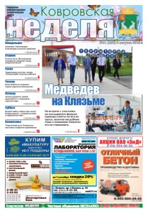 1 №31 Ковровская неделя 5 августа 2016 г. неделя Ковровская Понедельник Четверг страница 4 Пятница страница 6 страница 15 страница 3 Среда Вторник страница 2 12+ №31 (252) 5 августа 2016 г. Городская информационноаналитическая газета Воскресенье страница 14 Суббота страница 13 неделя Ковровская Частные объявления БЕСПЛАТНО: 6-44-07, kn-bizness@mail.ru ● ШПОН FINE-LINE ● ПИЛОМАТЕРИАЛЫ (ЭКЗОТИКА) ● НАТУРАЛЬНЫЙ ШПОН ● МЕБЕЛЬНЫЙ ЩИТ ● КЛЕЙ, ГРУНТ, ЛАК ● ТЕРРАСНАЯ ДОСКА Северный проезд, д. 1 Лесоторговая база 2-46-31 2-42-02 8-919-022-02-99 8-919-022-02-88 8-919-022-02-77 8-919-022-02-33 КОМПАНИЯ ВУДСТОК реклама реклама страница 2 Куплю дорого реклама 8-916-594-00-50 АКЦИИ ОАО «ЗиД» ПРОИЗВОДСТВО И ДОСТАВКА БЕТОНА ТОВАРНОГО, РАСТВОРА Работаем без выходных Специальные предложения для строительных фирм, собственников миксеров, прорабов реклама 8-900-586-48-48 Тел.: 44-509 ОТЛИЧНЫЙ БЕТОН На встрече с участниками молодежного форума премьер ответил на все вопросы, включая неудобные. Лишь о покемонах попросил его не спрашивать. на Клязьме Медведев Денежки. Работающие пенсионеры получат прибавку Творческий дуэт. Открылась выставка супругов-художников Выпей чайку, забудь про тоску! На фестивале – и удовольствие, и продовольствие Летом уродится, зимой пригодится: у садоводов – горячая пора Всем выйти из сумрака! Серые зарплаты наказуемы Территория детства: лагерь «Солнечный» отметил юбилей Благое дело. Молодежные активисты убирают сквер напротив музея