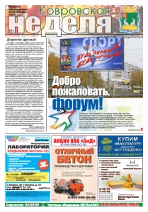 неделя Ковровская 12+ №40 (261) 7 октября 2016 г. Городская информационноаналитическая газета НОВЫЕ МЕДИЦИНСКИЕ ТЕХНОЛОГИИ ФЕДЕРАЛЬНАЯ СЕТЬ нам 15 лет Медицинская ЛАБОРАТОРИЯ Прием специалистов: • АЛЛЕРГОЛОГ-ИММУНОЛОГ, • терапевт, • акушер-гинеколог, • гастроэнтеролог, • ревматолог, • уролог • эндокринолог УЗИ, ЭКГ взрослым и детям *ПЕРЕЧЕНЬ И СТОИМОСТЬ АНАЛИЗОВ УТОЧНЯЙТЕ У АДМИНИСТРАТОРА ПРИ РЕГИСТРАЦИИ **ОРГАНИЗАТОР: OOO "КОМПАНИЯ "НОВЫЕ МЕДИЦИНСКИЕ ТЕХНОЛОГИИ". ИНФОРМАЦИЮ ОБ ОРГАНИЗАТОРЕ, МЕСТЕ, СРОКАХ И ПОРЯДКЕ УЧАСТИЯ В АКЦИИ УТОЧНЯЙТЕ ПО ТЕЛ. 6-43-48. OOO "КОМПАНИЯ "НОВЫЕ МЕДИЦИНСКИЕ ТЕХНОЛОГИИ", ОГРН 1133327002698 ИНН 332701001. ЛИЦ. ЛО-33-01-001823 ОТ 3.04.2015 Г. ВЫДАНА ДЕПАРТАМЕНТОМ ЗДРАВООХРАНЕНИЯ ВЛАДИМИРСКОЙ ОБЛАСТИ. г. Ковров, пр-т Ленина, д. 35 тел. 8(49232) 6-43-48, 8-930-830-09-57, 8-900-477-55-11 nmt33.ru ВСЕ ВИДЫ АНАЛИЗОВ, ЗАБОР КРОВИ С 0 ЛЕТ АНАЛИЗЫ В ДЕНЬ ОБРАЩЕНИЯ* РЕКЛАМА ÈÌÅÞÒÑß ÏÐÎÒÈÂÎÏÎÊÀÇÀÍÈß. ÍÅÎÁÕÎÄÈÌÀ ÊÎÍÑÓËÜÒÀÖÈß ÑÏÅÖÈÀËÈÑÒÀ До 1 ноября – АКЦИЯ** сдай комплекс гормонов щитовидной железы* и получи в подарок консультацию врача эндокринолога. Экономия – 600 рублей. неделя Ковровская Частные объявления БЕСПЛАТНО: 6-44-07, kn-bizness@mail.ru реклама страница 3 Куплю дорого реклама 8-916-594-00-50 АКЦИИ ОАО «ЗиД» ПРОИЗВОДСТВО И ДОСТАВКА БЕТОНА ТОВАРНОГО, РАСТВОРА Работаем без выходных Специальные предложения для строительных фирм, собственников миксеров, прорабов реклама 8-900-586-48-48 Тел.: 44-509 ОТЛИЧНЫЙ БЕТОН ● ШПОН FINE-LINE ● ПИЛОМАТЕРИАЛЫ (ЭКЗОТИКА) ● НАТУРАЛЬНЫЙ ШПОН ● МЕБЕЛЬНЫЙ ЩИТ ● КЛЕЙ, ГРУНТ, ЛАК ● ТЕРРАСНАЯ ДОСКА Северный проезд, д. 1 Лесоторговая база 2-46-31 2-42-02 8-919-022-02-99 8-919-022-02-88 8-919-022-02-77 8-919-022-02-33 КОМПАНИЯ ВУДСТОК реклама Добро пожаловать, Дорогие друзья! Сегодня, 7 октября, наша газета отмечает свой юбилей: исполнилось ровно пять лет со дня выхода первого номера газеты, и сейчас вы держите в руках уже 261‑й. Юби‑ лей хоть и маленький, но дорогой для нас, потому что первый. Надеемся, что впереди будут и 10-летие, и 15-летие, и так далее – газета будет жить дальше. Эти пять лет были непростыми. В Ковро‑ ве, где рынок СМИ насыщен сильными из‑ даниями на любой вкус, новичку доволь‑ но сложно завоевать свое место под солн‑ цем. Очевидно, что у нас это получилось – «Ковровская неделя» востребована, у нее сложился свой круг читателей и подпис‑ чиков, ее публикации имеют определен‑ ный резонанс. Сегодня мне хотелось бы по‑ благодарить за это всех, кто стоял у исто‑ ков: первых редакторов «КН» Любовь Мя‑ кшину, Ольгу Шипунову (Маркееву), Ека‑ терину Моисееву, всех, кто работал в газе‑ те или сотрудничал с ней. Отдельное спаси‑ бо и низкий поклон Ирине Назаренко, че‑ ловеку, которого можно назвать «крест‑ ной матерью» нашего издания. На ее пле‑ чи легла большая часть организационных хлопот по созданию газеты, и в дальней‑ шем Ирина Вячеславовна не теряла связь с «Ковровской неделей» – помогала советом, публиковала свои статьи, некоторое время работала заместителем главного редакто‑ ра и внесла большой вклад в развитие га‑ зеты. И, конечно же, огромное спасибо ны‑ нешнему коллективу «КН» – людям, кото‑ рые каждую неделю создают новый номер издания. Сегодня мы хотим разделить свой празд‑ ник со всеми друзьями «КН», ее читателя‑ ми, подписчиками, авторами, партнера‑ ми и рекламодателями. Давайте дружить дальше! Пишите, звоните, приходите – мы всегда открыты для общения, новых идей и проектов. С 