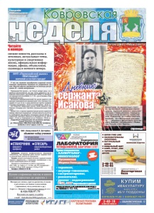 неделя Ковровская 12+ Читайте в номере: свежие новости, рассказы о земляках, актуальные темы, культурная и спортивная жизнь, официальная информация, афиша, объявления, сканворд и немного юмора. Городская информационноаналитическая газета МУП «Первомайский рынок» ПРИГЛАШАЕТ жителей и гостей города! У нас вы можете приобрести широкий ассортимент продуктов питания по умеренным ценам. Мясная группа продуктов по анализу цен региона 33 – самая актуальная. Преимущество рынка – не только низкие цены, но и удобное расположение. До нас легко добраться на городском транспорте: троллейбусами №№2, 8; автобусами маршрутной сети №№2, 3, 7, 15 – до остановки «Первомайский рынок». Вниманию предпринимателей! На рынке сдаются следующие помещения для арендаторов: пять торговых площадей от 5 до 10 кв. м (под различные группы товаров), площадь под магазин – 50 кв. м и помещение – 18 кв. м. На открытой территории рынка также имеются свободные площади для торговли промышленными товарами. Кроме того, в здании администрации рынка сдаются в аренду офисные помещения: четыре комнаты по 6-9 кв. м, помещение под общепит площадью свыше 200 кв. м, отдельный торговый павильон (с выходом на ул. Дегтярева) – 37 кв. м, помещение на ул. Гагарина – 30 кв. м. Подробную информацию об условиях аренды можно получить по адресу: ул. Абельмана, 136а (3-й этаж) или по телефону 8(49232) 2-15-37 (факс 2-20-71) реклама НОВЫЕ МЕДИЦИНСКИЕ ТЕХНОЛОГИИ медицинская ЛАБОРАТОРИЯ Прием специалистов: • АЛЛЕРГОЛОГ- ИММУНОЛОГ Русаковская Марина Геннадьевна, врач высшей категории из г. Владимира • терапевт, • акушер-гинеколог, • гастроэнтеролог, • ревматолог, • уролог • эндокринолог УЗИ, ЭКГ взрослым и детям *Перечень и стоимость анализов уточняйте у администратора при регистрации Лицензия № ЛО-33-01-001806 от 05.03.15г. выдана департаментом здравоохранения администрации Владимирской области. ОГРН 1143327006459, ИНН 3327124955. nmt33.ru ВСЕ ВИДЫ АНАЛИЗОВ, ЗАБОР КРОВИ С 0 ЛЕТ АНАЛИЗЫ В ДЕНЬ ОБРАЩЕНИЯ* РЕКЛАМА ÈÌÅÞÒÑß ÏÐÎÒÈÂÎÏÎÊÀÇÀÍÈß. ÍÅÎÁÕÎÄÈÌÀ ÊÎÍÑÓËÜÒÀÖÈß ÑÏÅÖÈÀËÈÑÒÀ г. Ковров, пр-т Ленина, д. 35, 8-930-830-09-57, 8-900-477-55-11 тел. 8(49232) 6-43-48, реклама ● ШПОН FINE-LINE ● ПИЛОМАТЕРИАЛЫ (ЭКЗОТИКА) ● НАТУРАЛЬНЫЙ ШПОН ● МЕБЕЛЬНЫЙ ЩИТ ● КЛЕЙ, ГРУНТ, ЛАК ● ТЕРРАСНАЯ ДОСКА Северный проезд, д. 1 Лесоторговая база 2-46-31 2-42-02 8-919-022-02-99 8-919-022-02-88 8-919-022-02-77 8-919-022-02-33 КОМПАНИЯ ВУДСТОК реклама реклама Выцветшие, но аккуратные строчки, написанные химическим карандашом, короткие записи с многочисленными сокращениями, самодельная картонная книжечка, пожелтевшая, порванная на сгибах газетная вырезка... Эти бесценные документы – свидетели фронтового пути нашего земляка, прошедшего с боями пол-России и пол-Европы... страница 5 Дневник сержанта Исакова №18 (291) 5 мая 2017 г. Òðåáîâàíèÿ: íà÷àëüíîå ïðîôåññèîíàëüíîå îáðàçîâàíèå (æåëàòåëüíî). Ïðè îáðàùåíèè èìåòü ïàñïîðò, òðóäîâóþ êíèæêó, âîåííûé áèëåò, äèïëîì îá îáðàçîâàíèè. Óñëîâèÿ: óñïåøíî îêîí÷èâøèì îáó÷åíèå è ñäàâøèì ýêçàìåí âûäàåòñÿ ñâèäåòåëüñòâî î ïðèñâîåíèè êâàëèôèêàöèè è âîçìîæíî ïðîäîëæåíèå ðàáîòû íà çàâîäå. Îáðàùàòüñÿ â Óïðàâëåíèå ïî ðàáîòå ñ ïåðñîíàëîì ÎÀÎ «ÇèÄ»: óë. Òðóäà, ä. 4, 1-é ýòàæ, êàá. ¹3 (ïîíåäåëüíèê – ïÿòíèöà ñ 9.00 äî 16.00, ïåðåðûâ ñ 12.30 äî 13.30 Òåëåôîí: (49232) 9-10-40 ðåêëàìà ÎÀÎ «Çàâîä èìåíè Â.À. Äåãòÿð¸âà» ÑÒÀÍÎ×ÍÈÊ øèðîêîãî ïðîôèëÿ ÑËÅÑÀÐÜ ìåõàíîñáîðî÷íûõ ðàáîò ÏÎ ÏÐÎÔÅÑÑÈßÌ ÌÅÒÀËËÎÎÁÐÀÁÎÒÊÈ: îáúÿâëÿåò íàáîð ó÷åíèêîâ