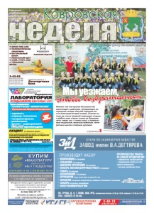 неделя Ковровская 12+ Городская информационноаналитическая газета НОВЫЕ МЕДИЦИНСКИЕ ТЕХНОЛОГИИ медицинская ЛАБОРАТОРИЯ Прием специалистов: • АЛЛЕРГОЛОГ-ИММУНОЛОГ Русаковская Марина Геннадьевна, врач высшей категории из г. Владимира • терапевт, • акушер-гинеколог, • гастроэнтеролог, • ревматолог, • уролог • эндокринолог УЗИ, ЭКГ взрослым и детям *Перечень и стоимость анализов уточняйте у администратора при регистрации **место проведения акции: г. Ковров пр-т Ленина, д. 35 (тел. 6-43-48.) с 5.07.2017 по 5.08.2017. Акцию проводит ООО «Медлайн».Лицензия№ЛО-33-01-001806от05.03.15г.выданадепартаментомздравоохраненияадминистрацииВладимирской области. ОГРН 1143327006459, ИНН 3327124955. скидки по акции и дисконтным картам не суммируются nmt33.ru ВСЕ ВИДЫ АНАЛИЗОВ, ЗАБОР КРОВИ С 0 ЛЕТ АНАЛИЗЫ В ДЕНЬ ОБРАЩЕНИЯ* РЕКЛАМА ÈÌÅÞÒÑß ÏÐÎÒÈÂÎÏÎÊÀÇÀÍÈß. ÍÅÎÁÕÎÄÈÌÀ ÊÎÍÑÓËÜÒÀÖÈß ÑÏÅÖÈÀËÈÑÒÀ г. Ковров, пр-т Ленина, д. 35, 8-930-830-09-57, 8-900-477-55-11 тел. 8(49232) 6-43-48, АКЦИЯ!* С 5 июля по 5 августа сдай 4 гормона щитовидной железы и получи УЗИ ЩИТОВИДНОЙ ЖЕЛЕЗЫ В ПОДАРОК** ЭКОНОМИЯ 550 РУБЛЕЙ реклама ● ШПОН FINE-LINE ● ПИЛОМАТЕРИАЛЫ (ЭКЗОТИКА) ● НАТУРАЛЬНЫЙ ШПОН ● МЕБЕЛЬНЫЙ ЩИТ ● КЛЕЙ, ГРУНТ, ЛАК ● ТЕРРАСНАЯ ДОСКА Северный проезд, д. 1 Лесоторговая база 2-42-02 8-919-022-02-99 8-919-022-02-88 8-919-022-02-77 8-919-022-02-33 КОМПАНИЯ ВУДСТОК реклама реклама №28 (301) 14 июля 2017 г. страница 3 – ØËÈÔÎÂÙÈÊ 4-6 ðàçðÿäîâ – ÃÀËÜÂÀÍÈÊ 4-5 ðàçðÿäîâ – ÄÎÂÎÄ×ÈÊ-ÏÐÈÒÈÐÙÈÊ 5-6 ðàçðÿäîâ – ÑËÅÑÀÐÜ ÌÅÕÀÍÎÑÁÎÐÎ×ÍÛÕ ÐÀÁÎÒ 3-6 ðàçðÿäîâ – ÒÎÊÀÐÜ 4-6 ðàçðÿäîâ – ØÒÀÌÏÎÂÙÈÊ 3-6 ðàçðÿäîâ – ÏÅÐÅÂÎÄ×ÈÊ (àíãë. ÿçûê) îïûò íå ìåíåå 2-õ ëåò – ÍÀËÀÄ×ÈÊ êîíòðîëüíî-èçìåðèòåëüíûõ ïðèáîðîâ è àâòîìàòèêè 4-5 ðàçðÿäîâ – ÑËÅÑÀÐÜ ïî ðåìîíòó àâòîìîáèëåé – ÝËÅÊÒÐÎÕÈÌÎÁÐÀÁÎÒ×ÈÊ ÏÐÎÈÇÂÎÄÈÒ ÍÀÁÎÐ ÓË. ÒÐÓÄÀ, Ä. 4, 1 ÝÒÀÆ, ÊÀÁ. ¹3, ïîíåäåëüíèê-ïÿòíèöà ñ 9.00 äî 16.00, ïåðåðûâ ñ 12.30 äî 13.30. ÒÅË.: (49232) 9-10-40 ÏÐÅÈÌÓÙÅÑÒÂÀ ÐÀÁÎÒÛ ÍÀ ÍÀØÅÌ ÏÐÅÄÏÐÈßÒÈÈ: – îôèöèàëüíîå òðóäîóñòðîéñòâî – ìåäèöèíñêèé îñìîòð çà ñ÷¸ò ñðåäñòâ ïðåäïðèÿòèÿ – âûñîêàÿ çàðàáîòíàÿ ïëàòà Именно так настроено большинство мальчишек и девчонок, покидающих загородный лагерь «Лесной городок» после окончания второй смены. Плохая погода не стала помехой хорошему отдыху, и ребята уже строят планы на будущее лето: через год – снова сюда, к прекрасным педагогам, веселым вожатым, интересным делам и верным друзьям! Мы уезжаем, ÷òîáû âîçâðàòèòüñÿ